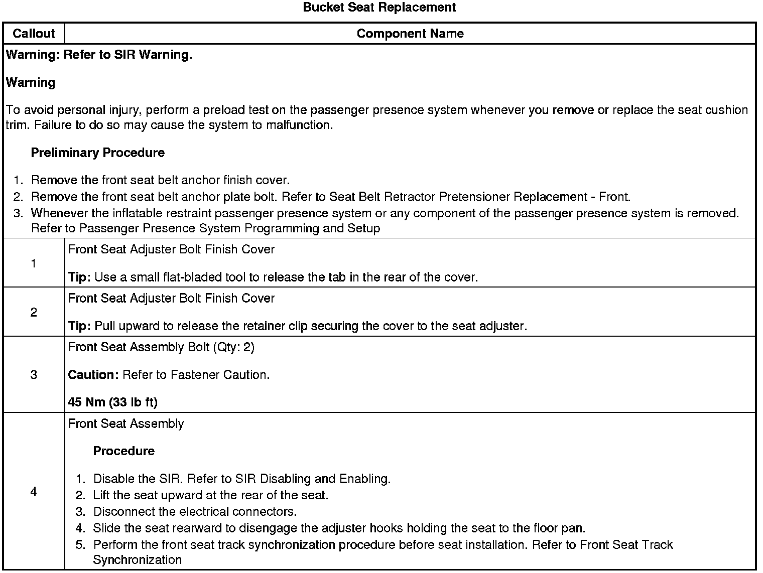 Bucket Seat Replacement