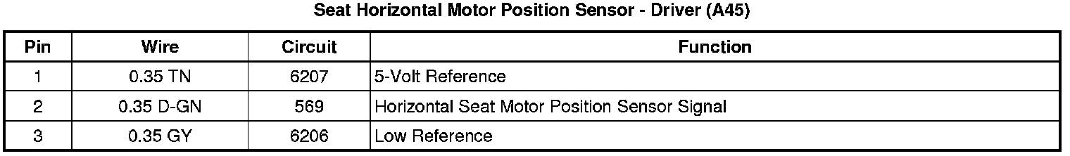 Seat Horizontal Motor Position Sensor - Driver (A45)