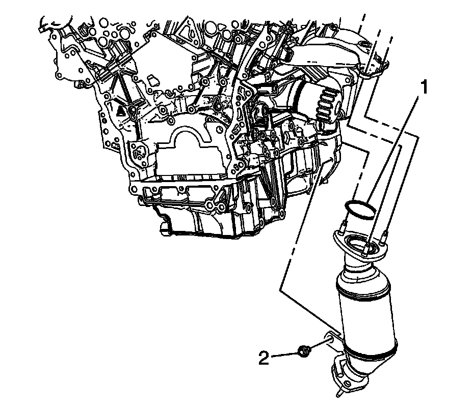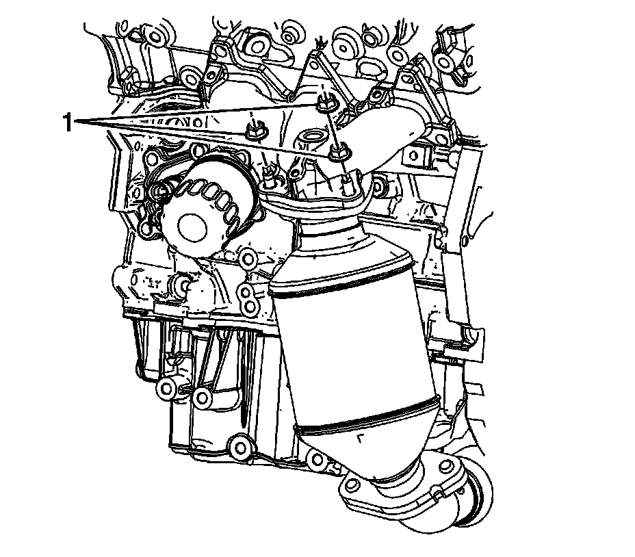 2. Remove the catalytic converter to exhaust manifold nuts (1).