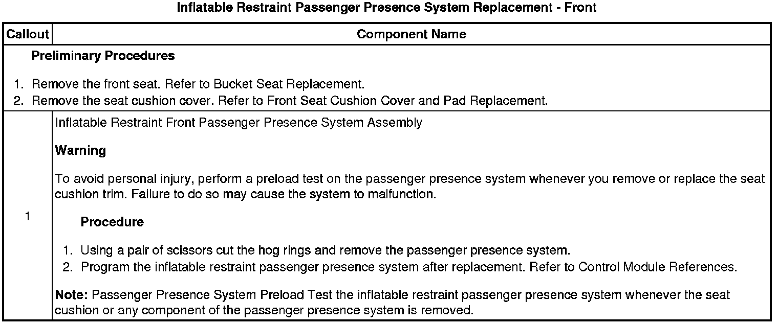 Inflatable Restraint Passenger Presence System Replacement - Front