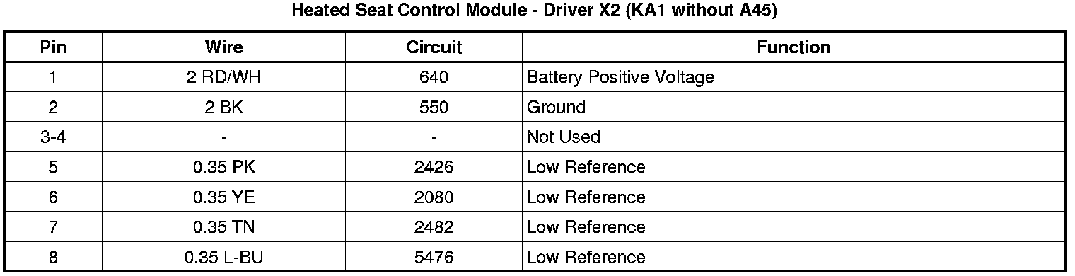 Heated Seat Control Module - Driver X2 (KA1 without A45)