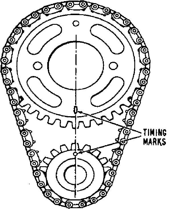6. To install, assemble chain on sprockets and slide sprockets on their respective shafts with the ``O'' marks on the sprockets lined up as shown, Fig. 10.