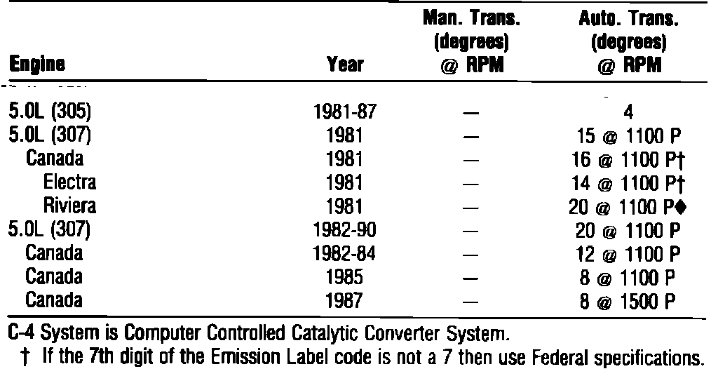 Ignition Timing: Specifications