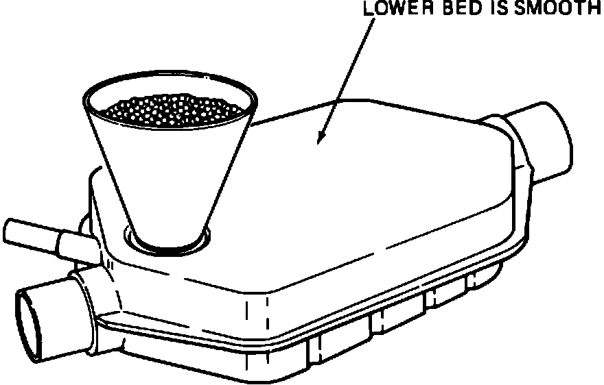 10.. Using funnel J-34155-3, pour the sifted beads into the lower bed of the new converter. If additional beads are required to completely fill the lower bed, it will be necessary to obtain a lower bed bead kit from the parts department. Excess beads from the kit should be saved in a clean container for future use.