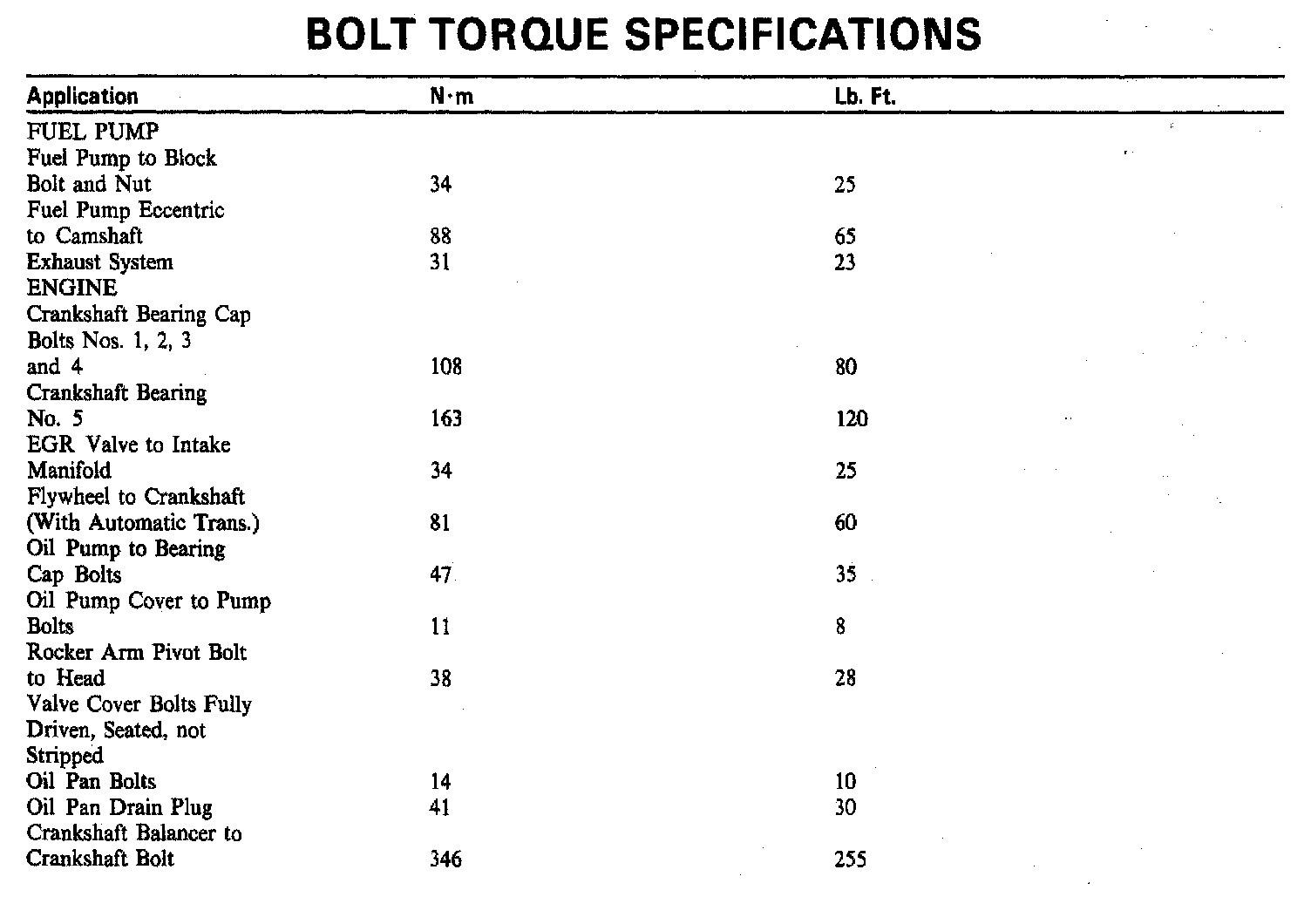 Torque Specifications: