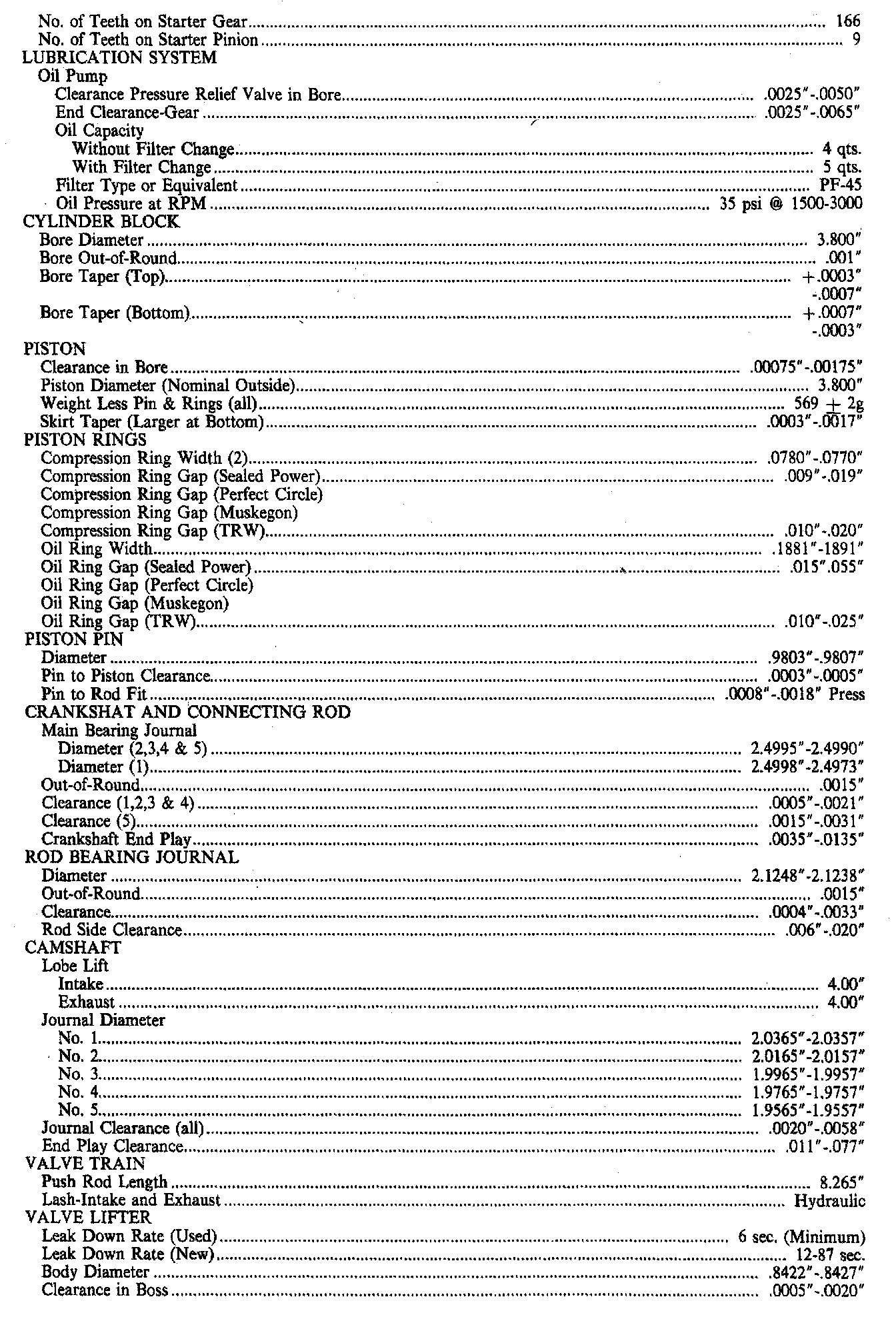 Engine Specifications: