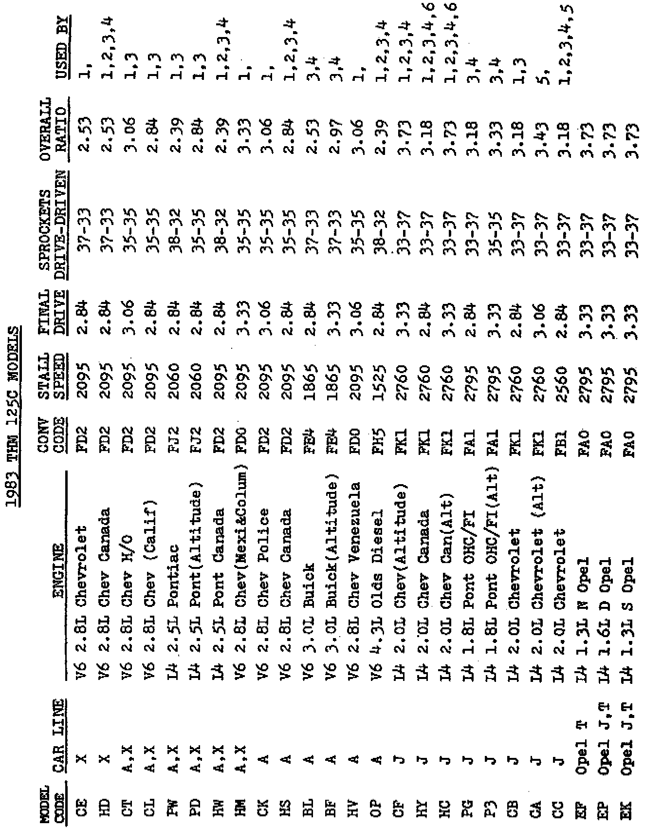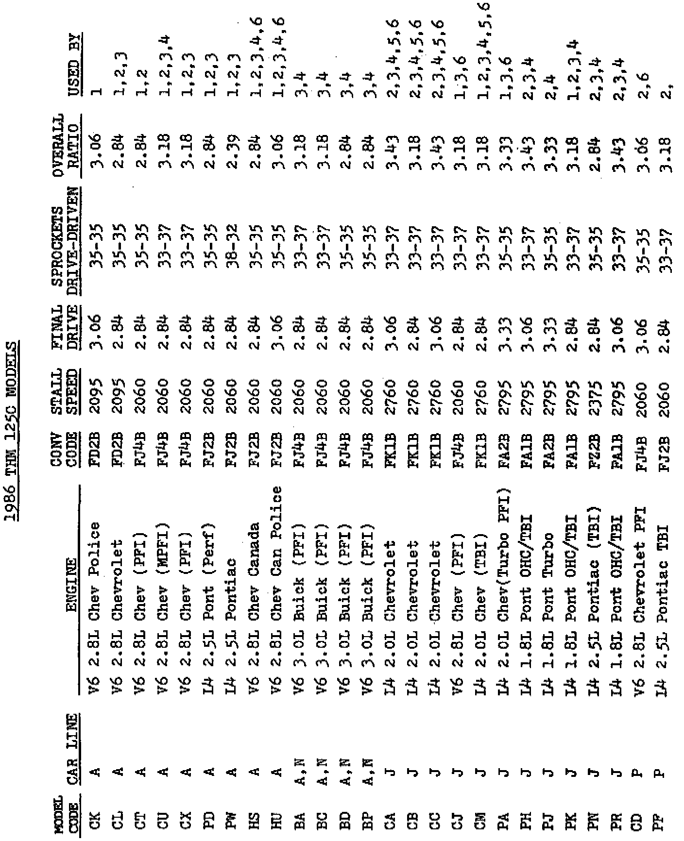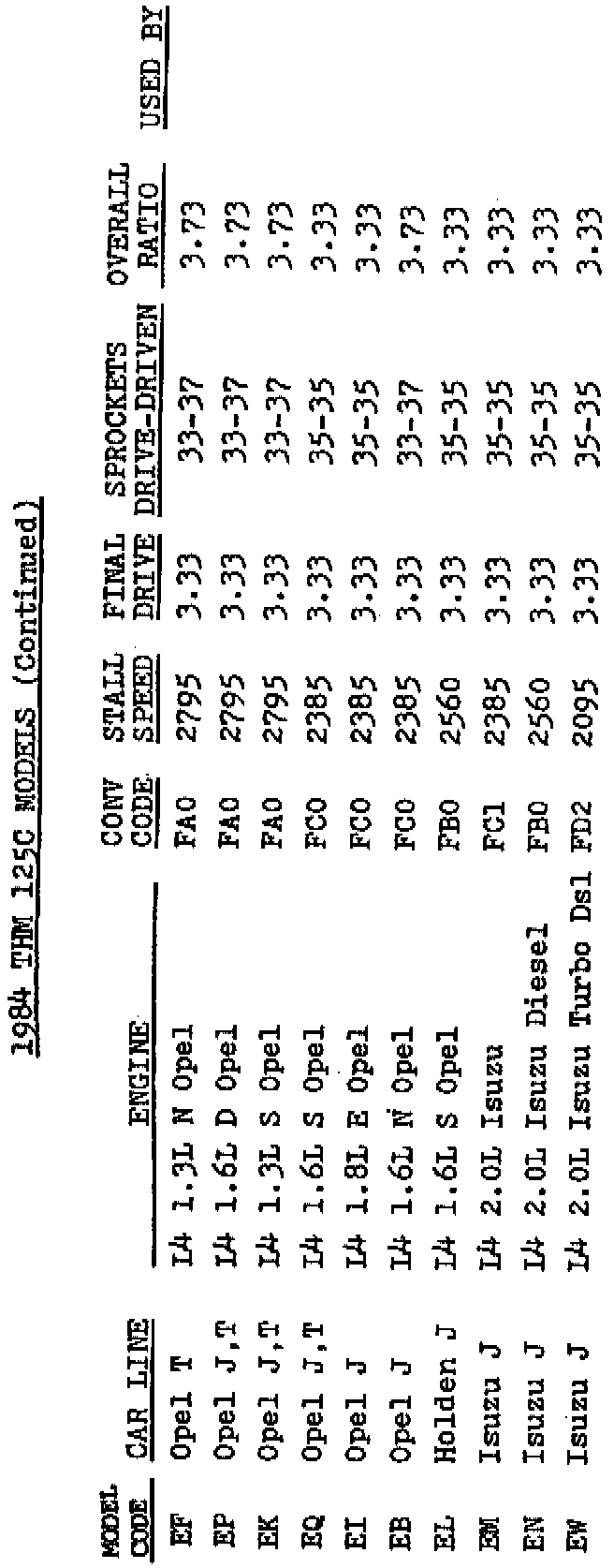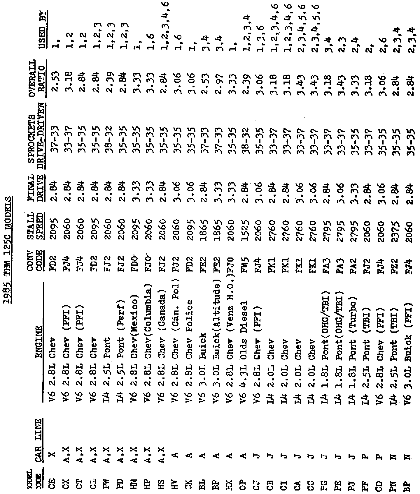 The following information may be helpful when interchanging parts and/or transmissions in vehicles equipped with a THM 125C.