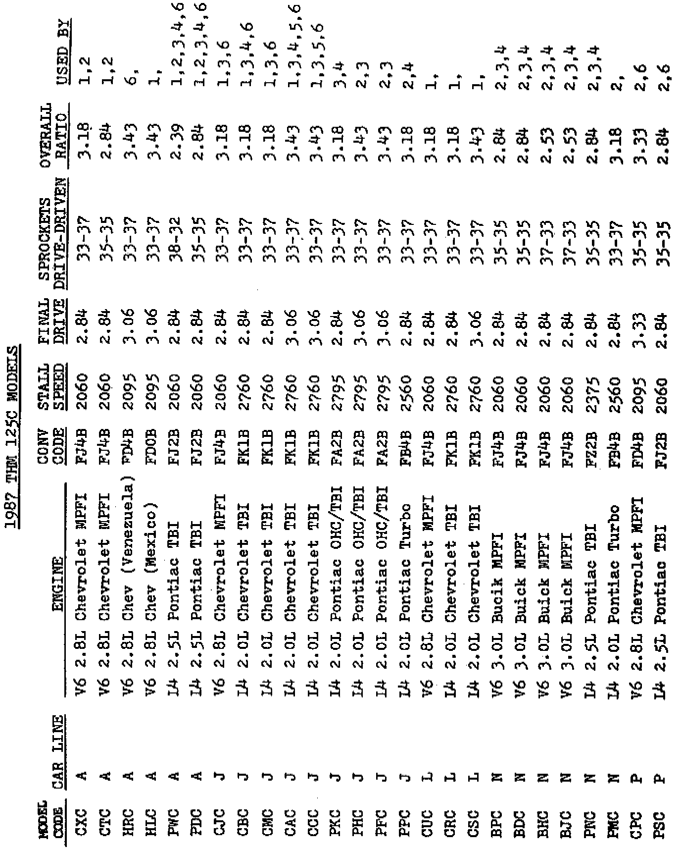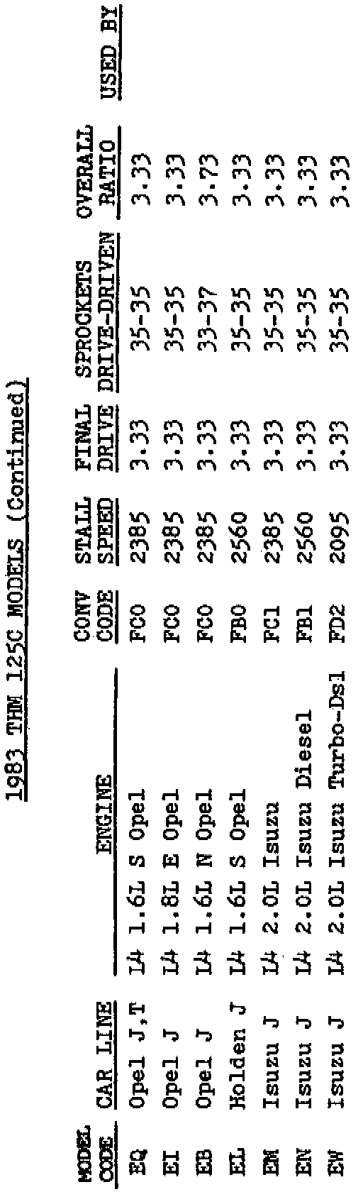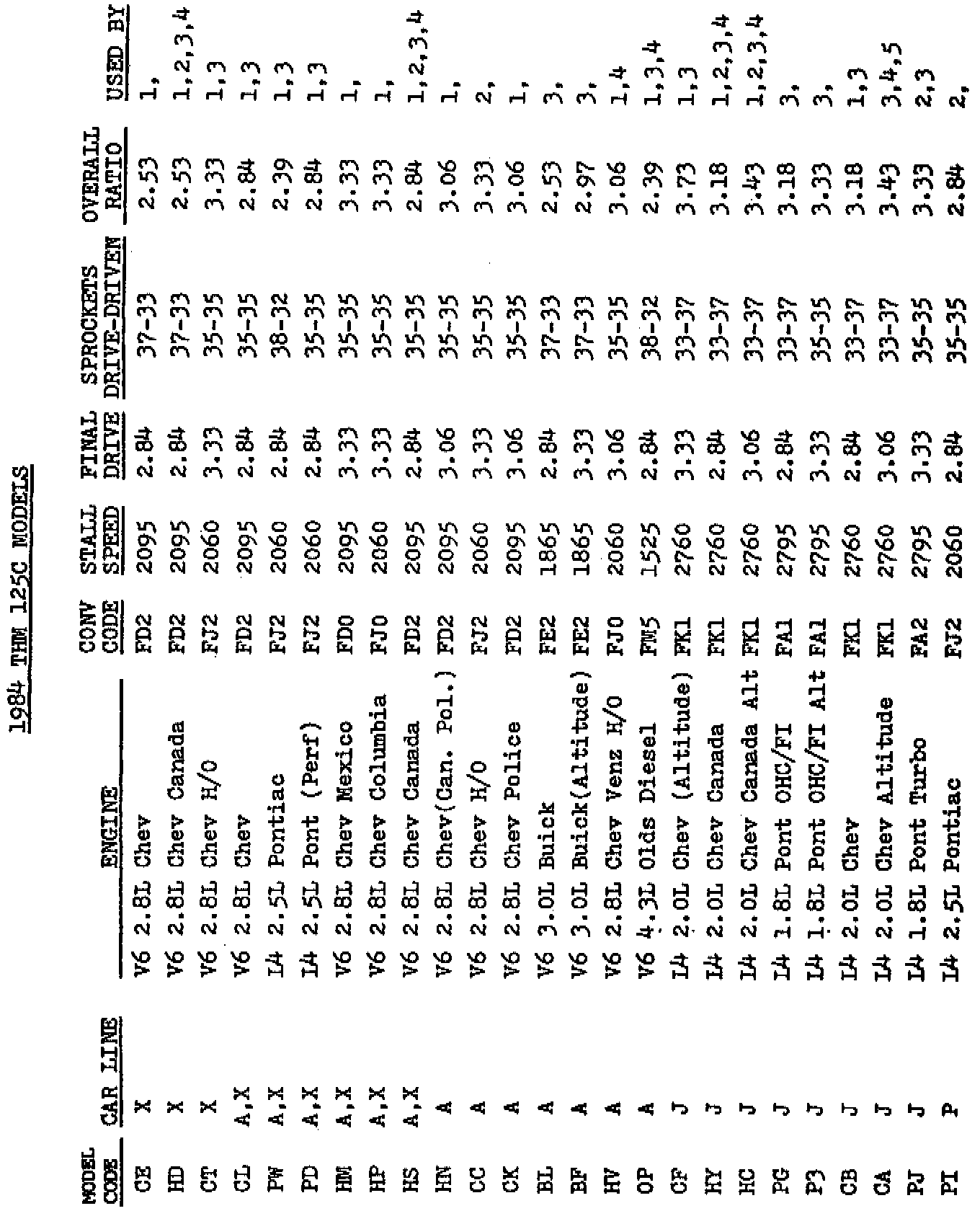 A/T - THM 125C Model Code Information
