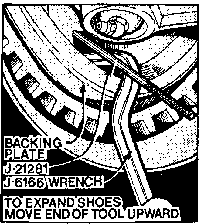 1. Remove adjusting hole cover from backing plate. Turn brake adjusting screw to expand shoes until wheel can just be turned by hand.