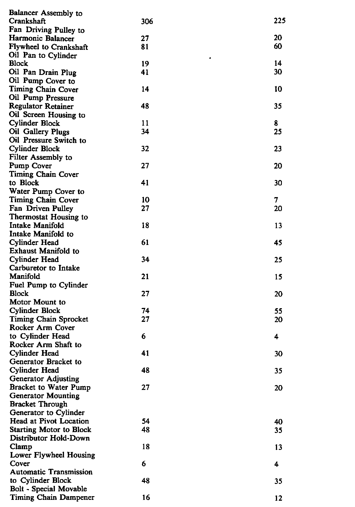 Continued Torque Specifications: