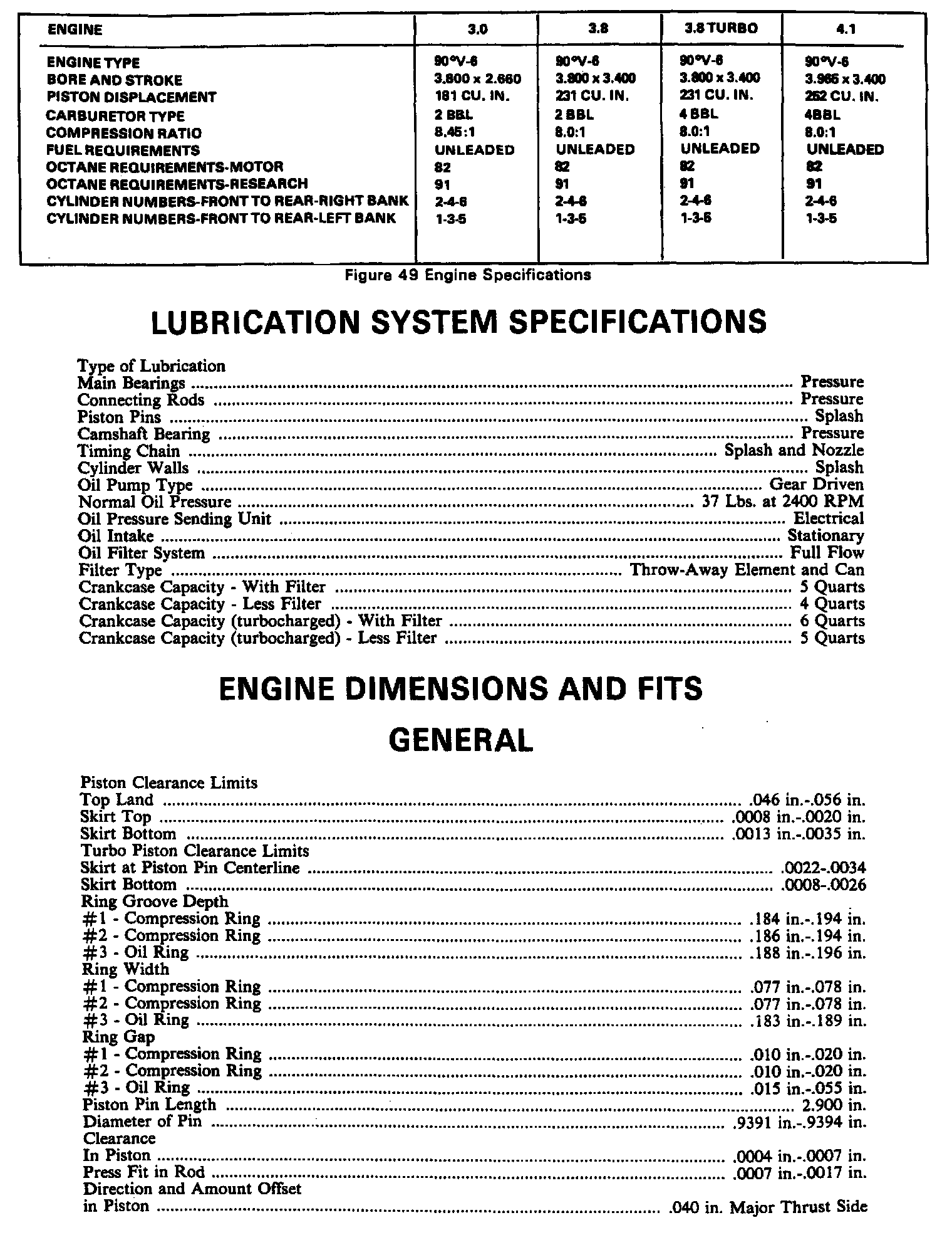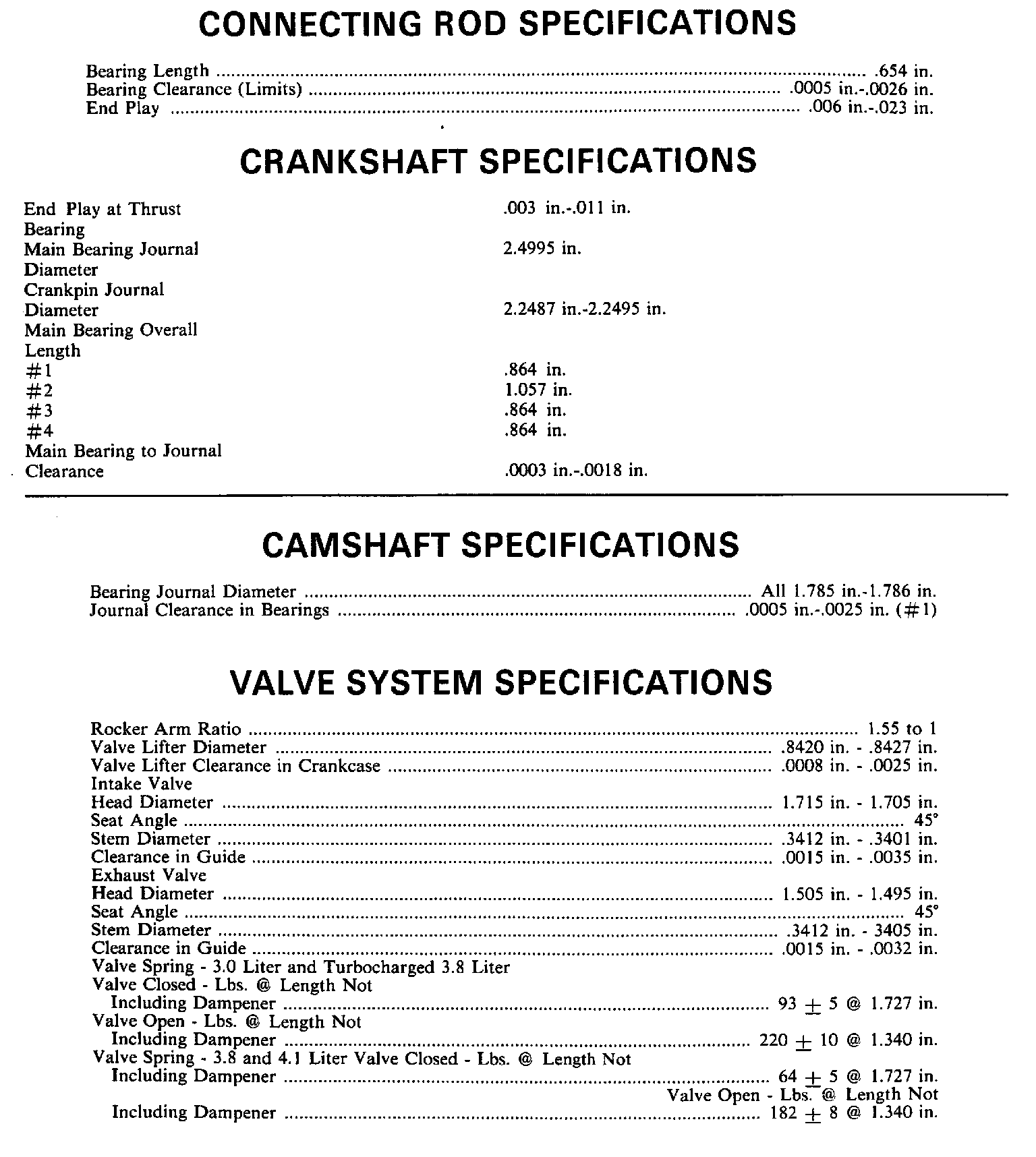 Continued Engine Specifications: