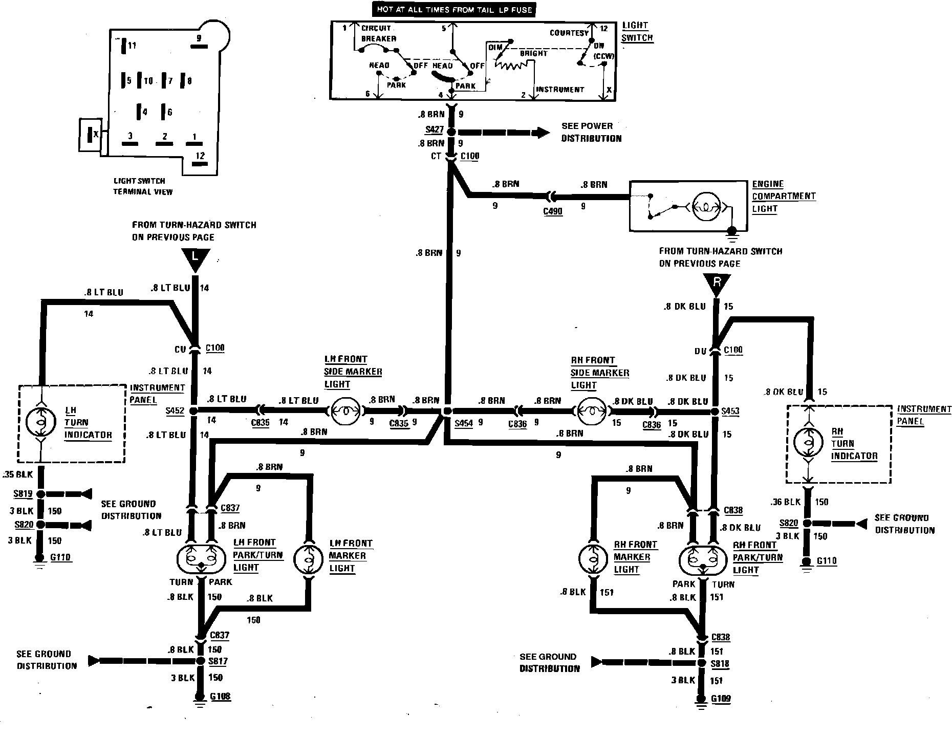 Engine Compartment, Front Marker, Front Park, Hazard & Turn Signal Lamp Wiring Circuit Less Twillight Sentinel: