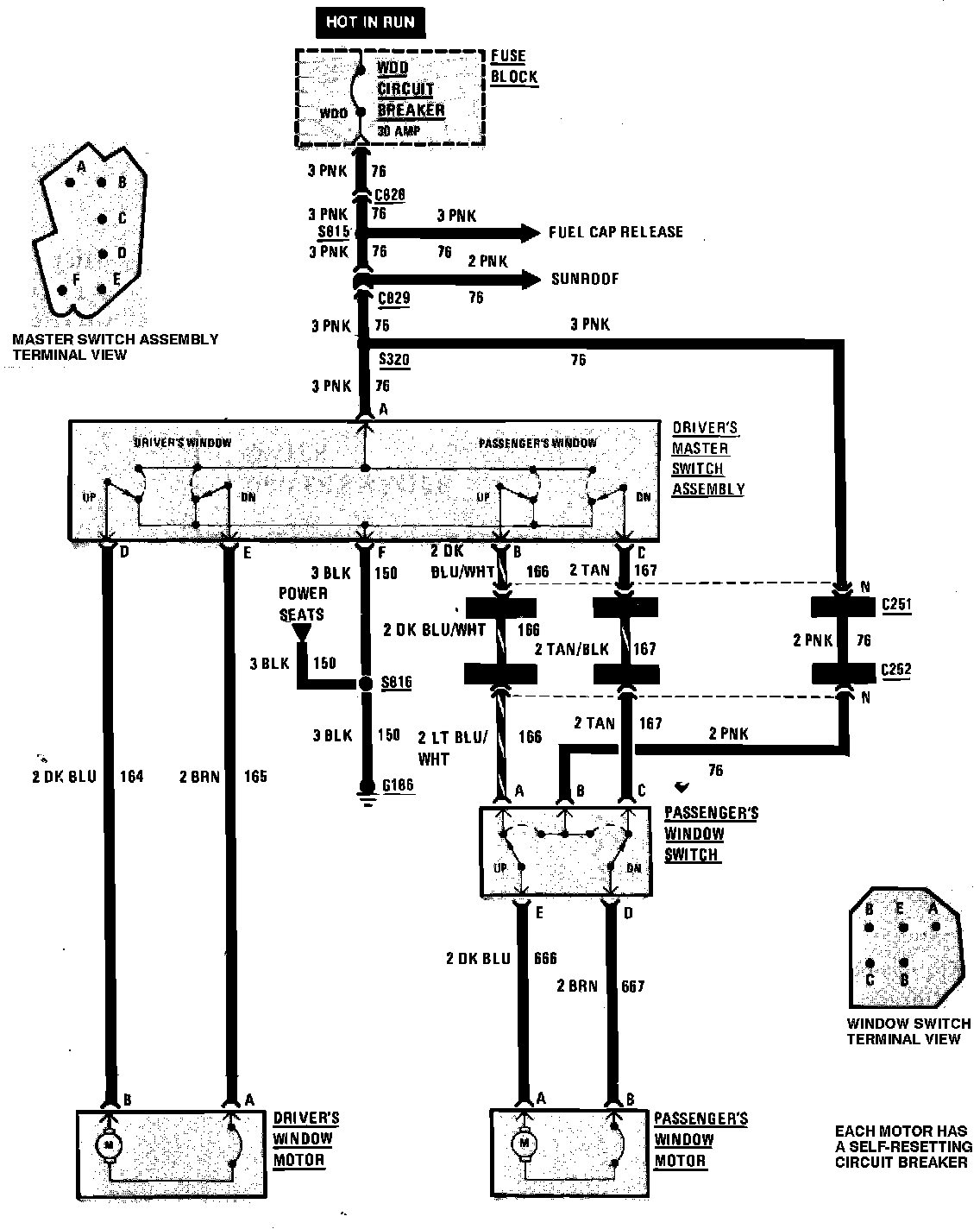 Power Windows Wiring Circuit, Two Door: