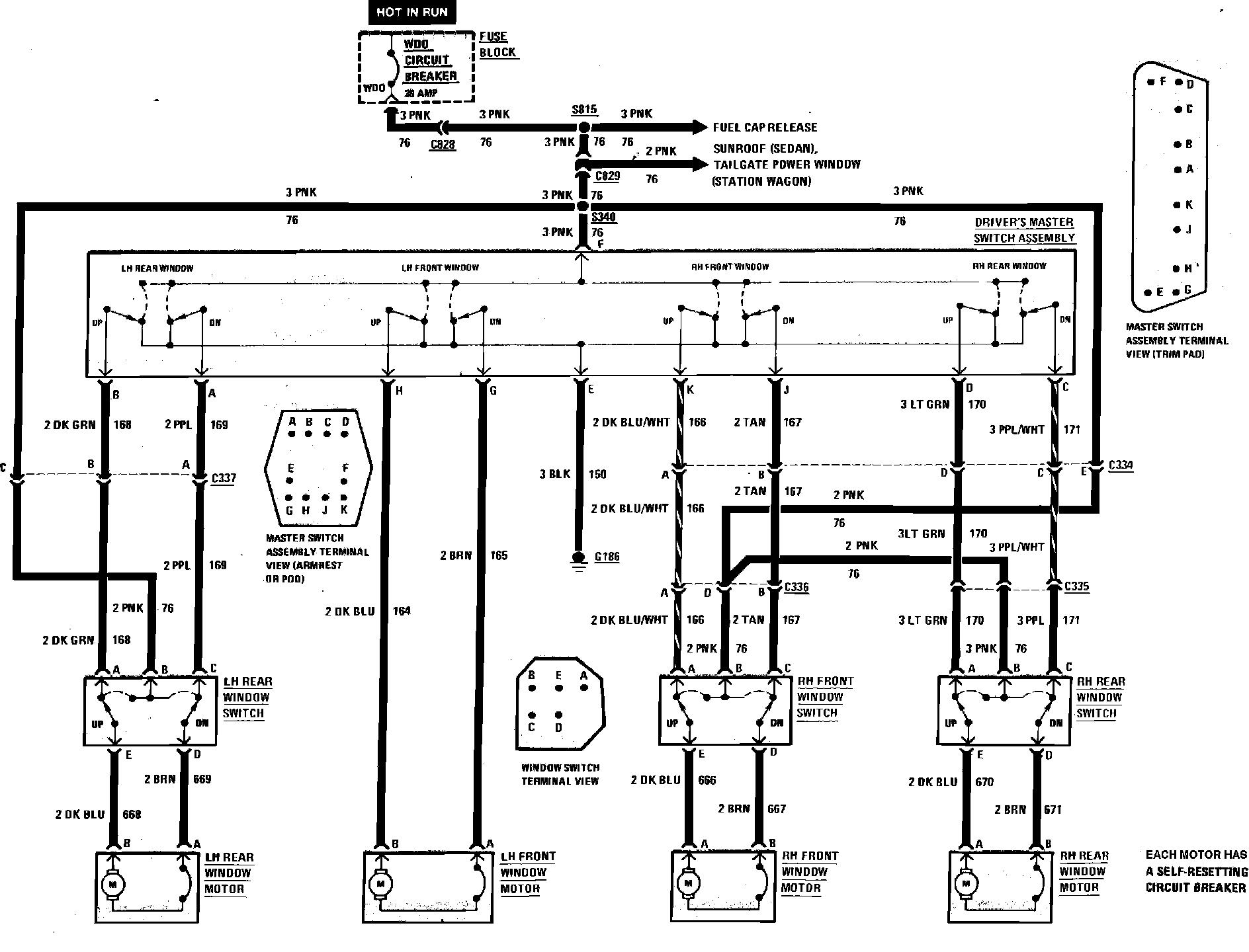 Power Windows Wiring Circuit, Four Door: