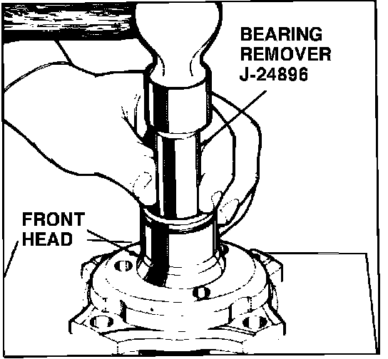 5. With tool J-24896, drive main bearing from front head, Fig. 20.