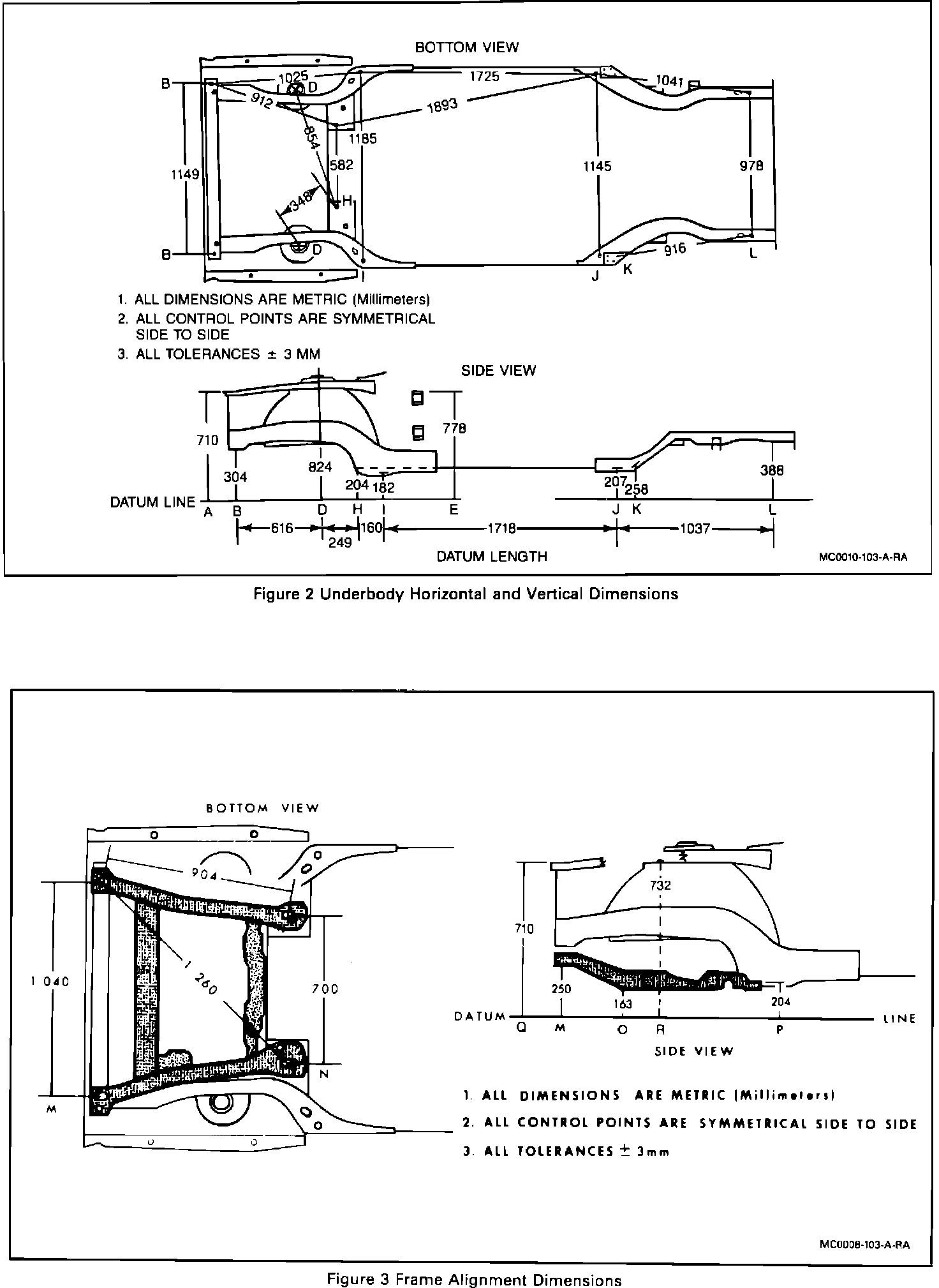Section 10-3 with these revised dimensions should be used for all prior model year Century cars replacing any information in prior manuals referring to the frame and underbody.