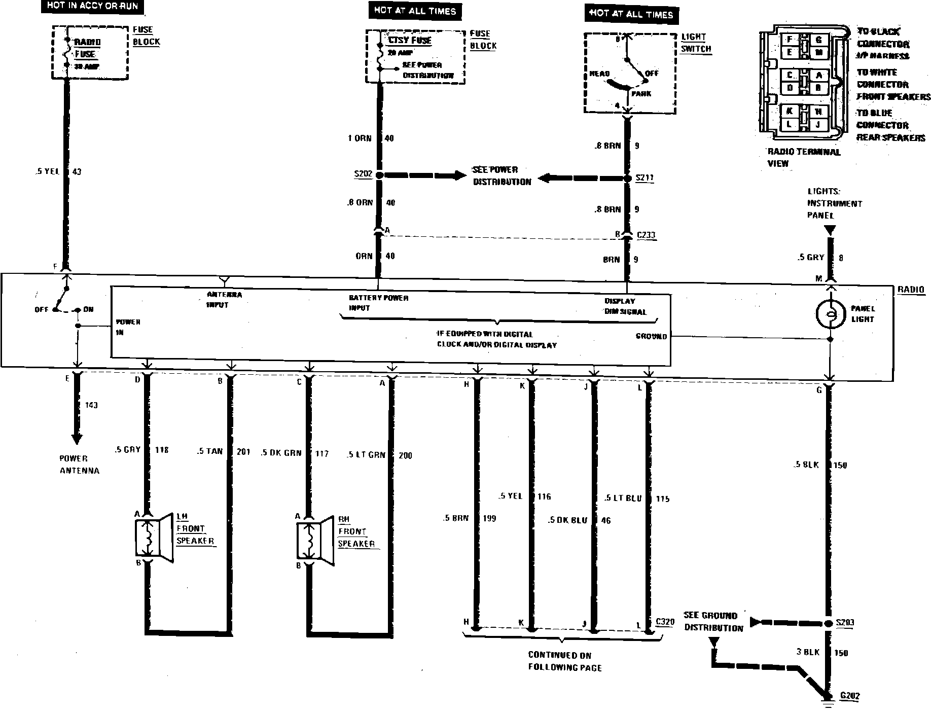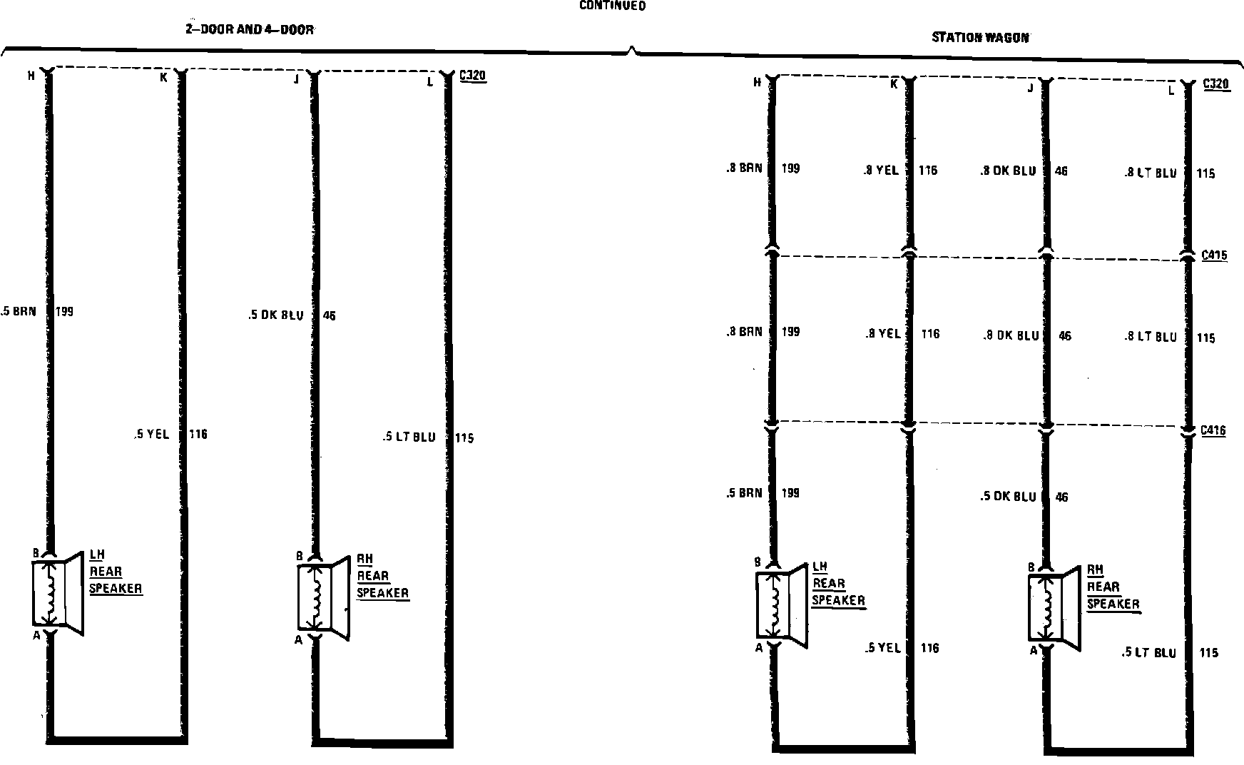 Radio & Speaker Wiring Circuit (Electronic Tuning, Mono & Stereo):