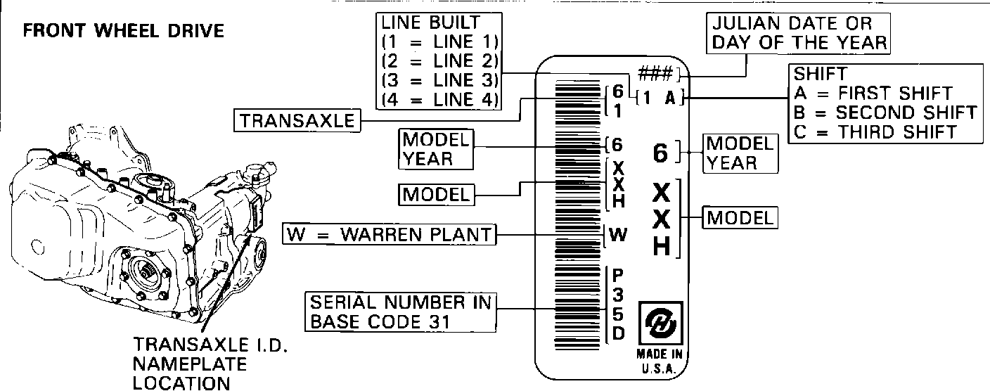 FIGURE 1 - THM 440-T4 TRANSAXLE I.D. NAMEPLATE: