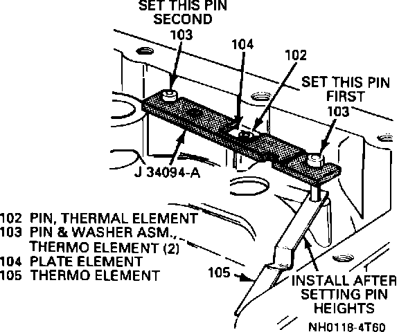 1. Set the middle thermo pin (102 or *123) height with J-34094-A.
