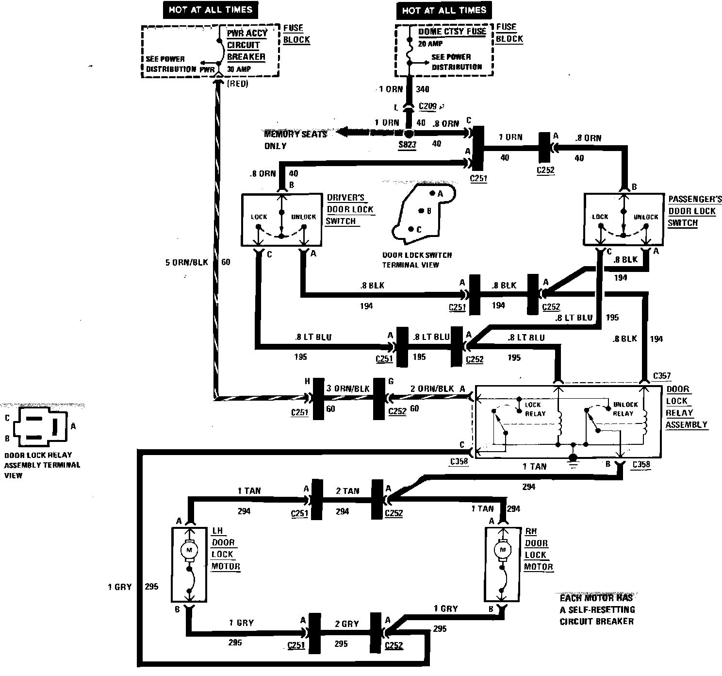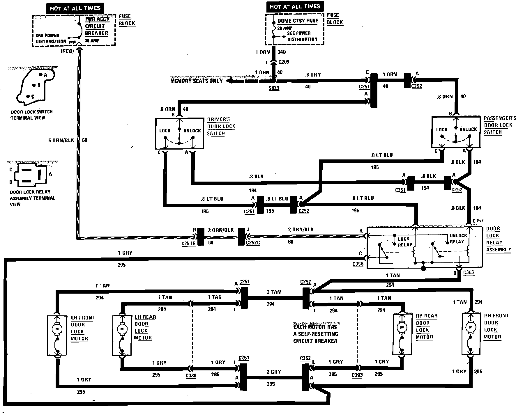 Power Door Locks Wiring Circuit, Four Door: