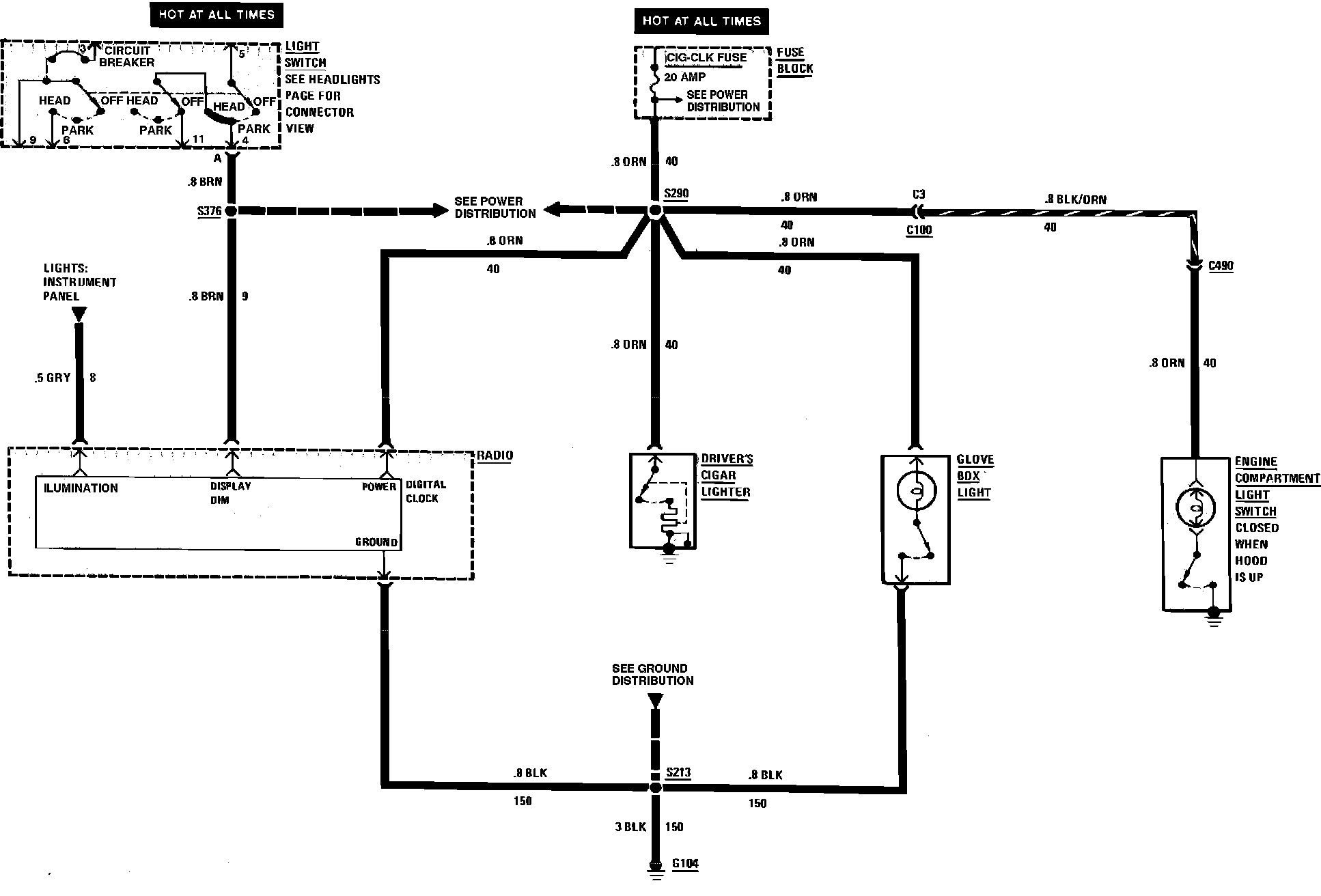 Cigar Lighter, Clock, Engine & Glove Compartment Light Wiring Circuit: