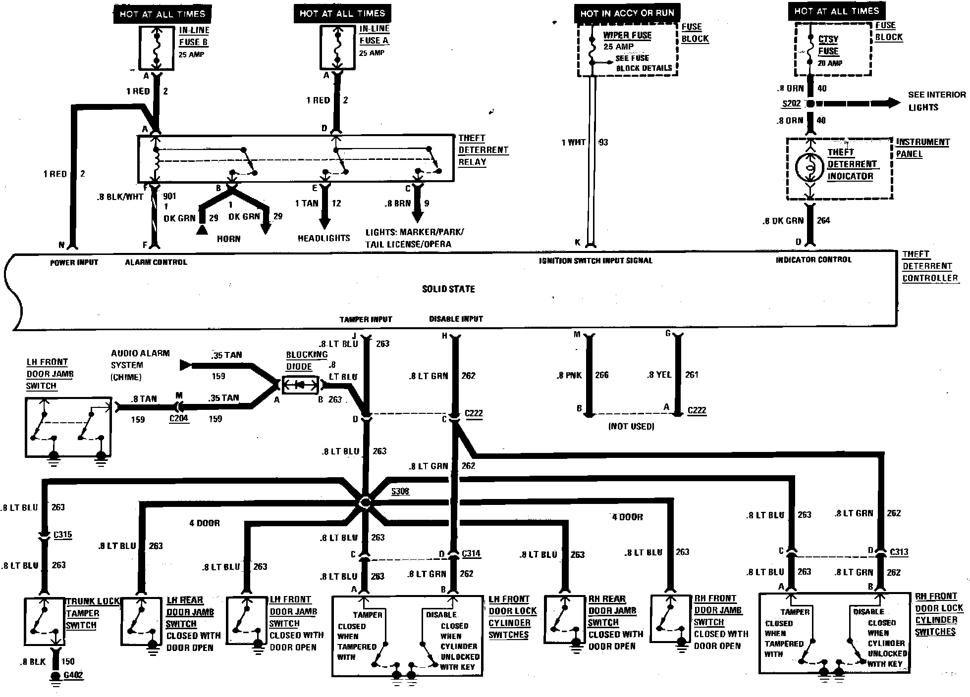 Fig. 265 Theft Deterrent System Wiring Circuit - Less Power Door Locks (Part 1 of 2):
