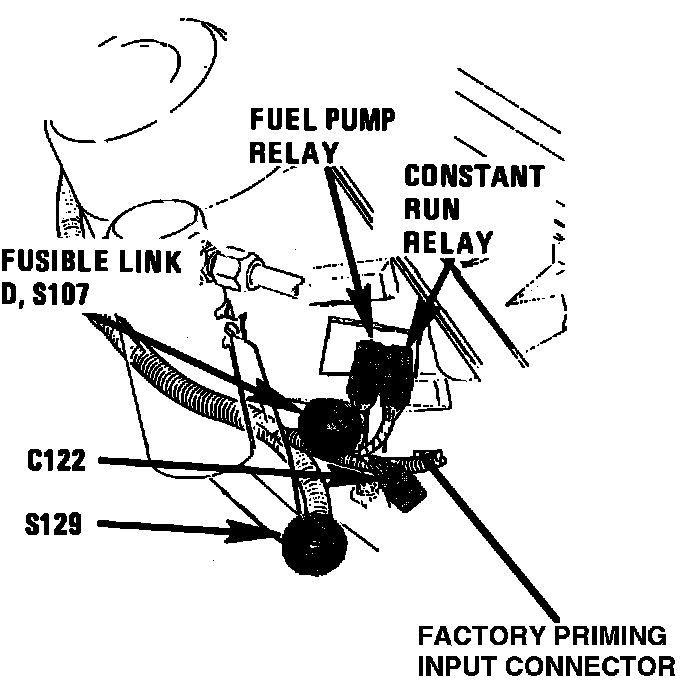 The Constant Run Relay is located ahead of LH shock tower, on fender.
