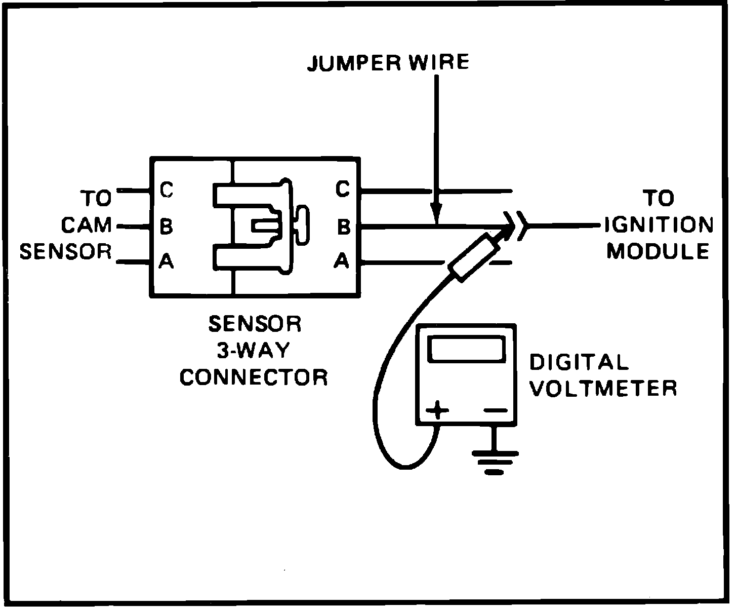 7. Turn ignition On, then rotate sensor counterclockwise until sensor switch closes. This is indicated by voltage reading going from a high of 5 to 12 volts to a low of 0 to 2 volts. Low voltage indicates switch closing.