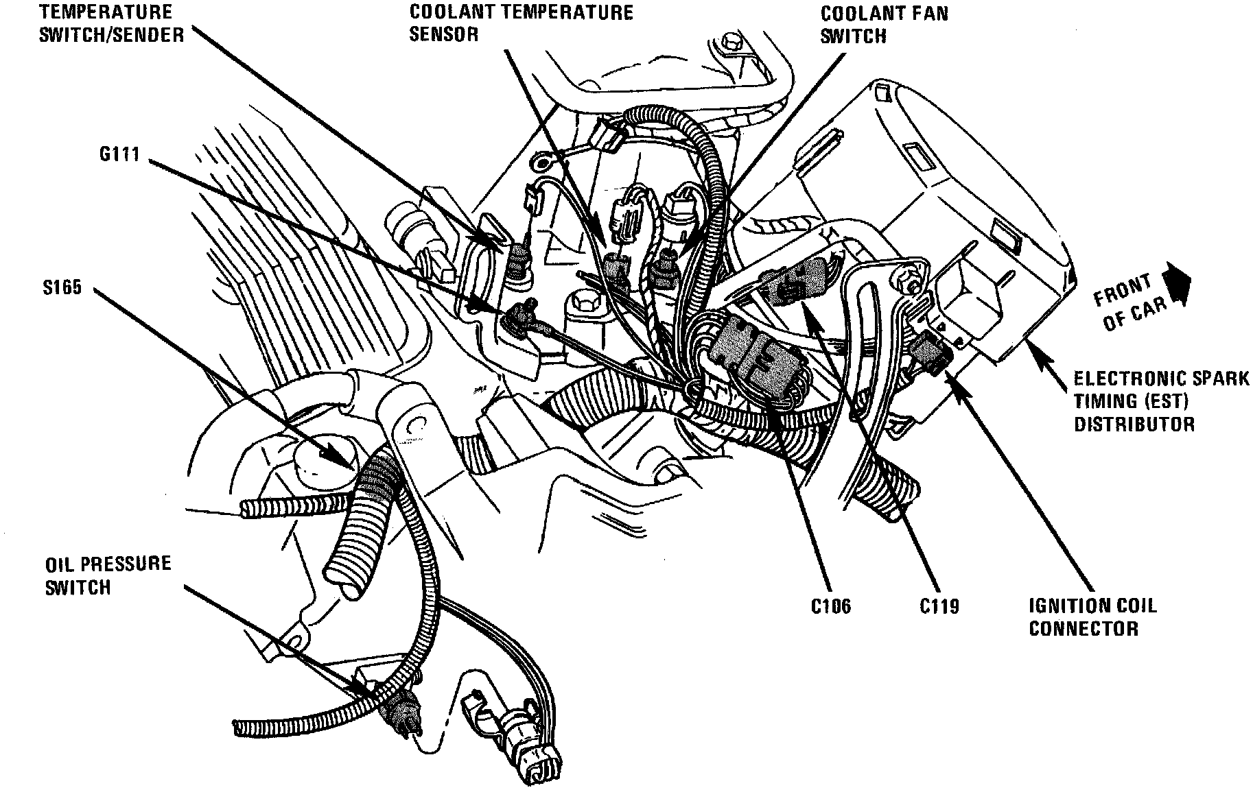 Coolant Temperature Sensor/Switch (For Computer): Locations