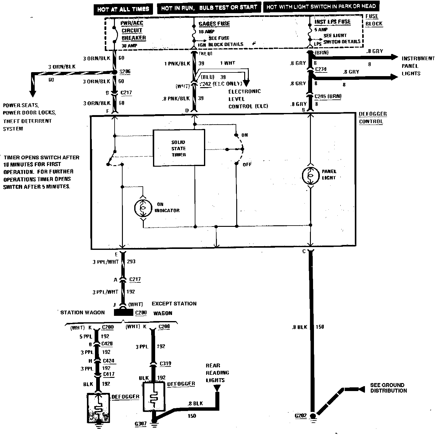 Fig. 252 Rear Window Defogger Wiring Circuit:
