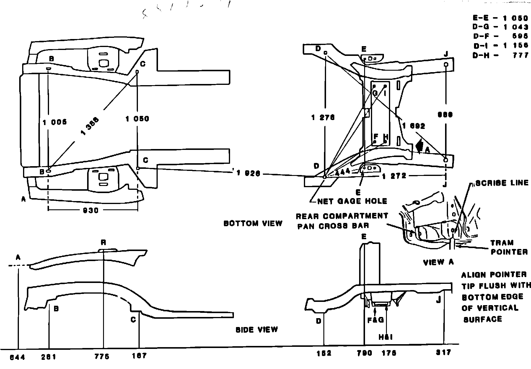 F & G Radius of forward Centerline of cross Rear compartment pan