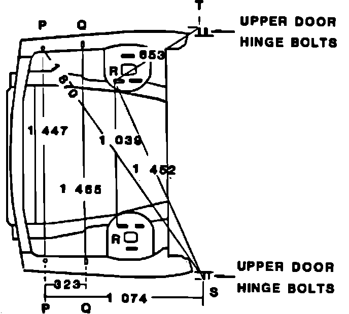 S & T Outboard end of bolt Center of bolt Forward/upper door hinge