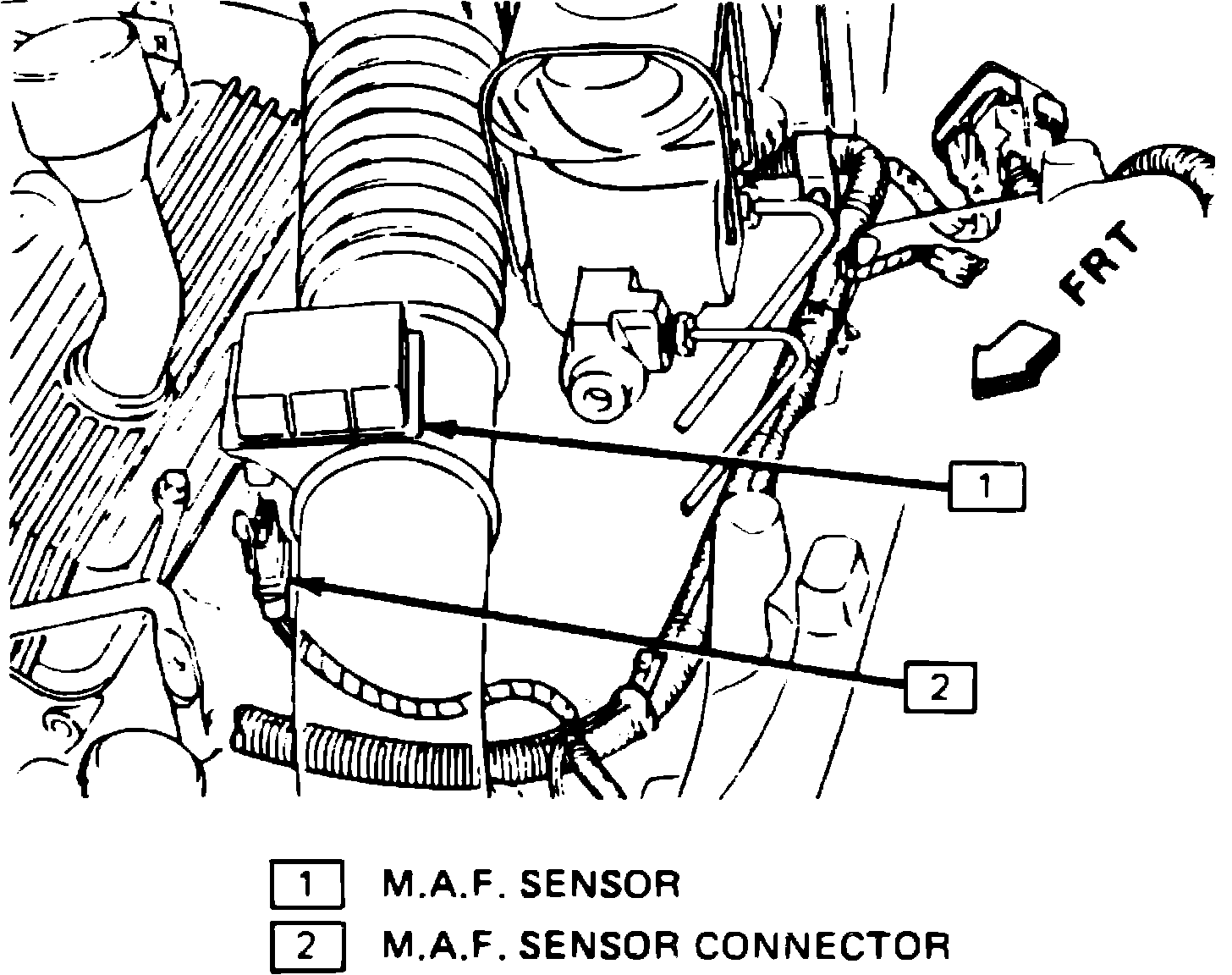 To replace MAF sensor on all except 1984-85 turbocharged models, refer to Fig. 343. To replace MAF sensor on 1984-85 turbocharged models, refer to Fig. 344.