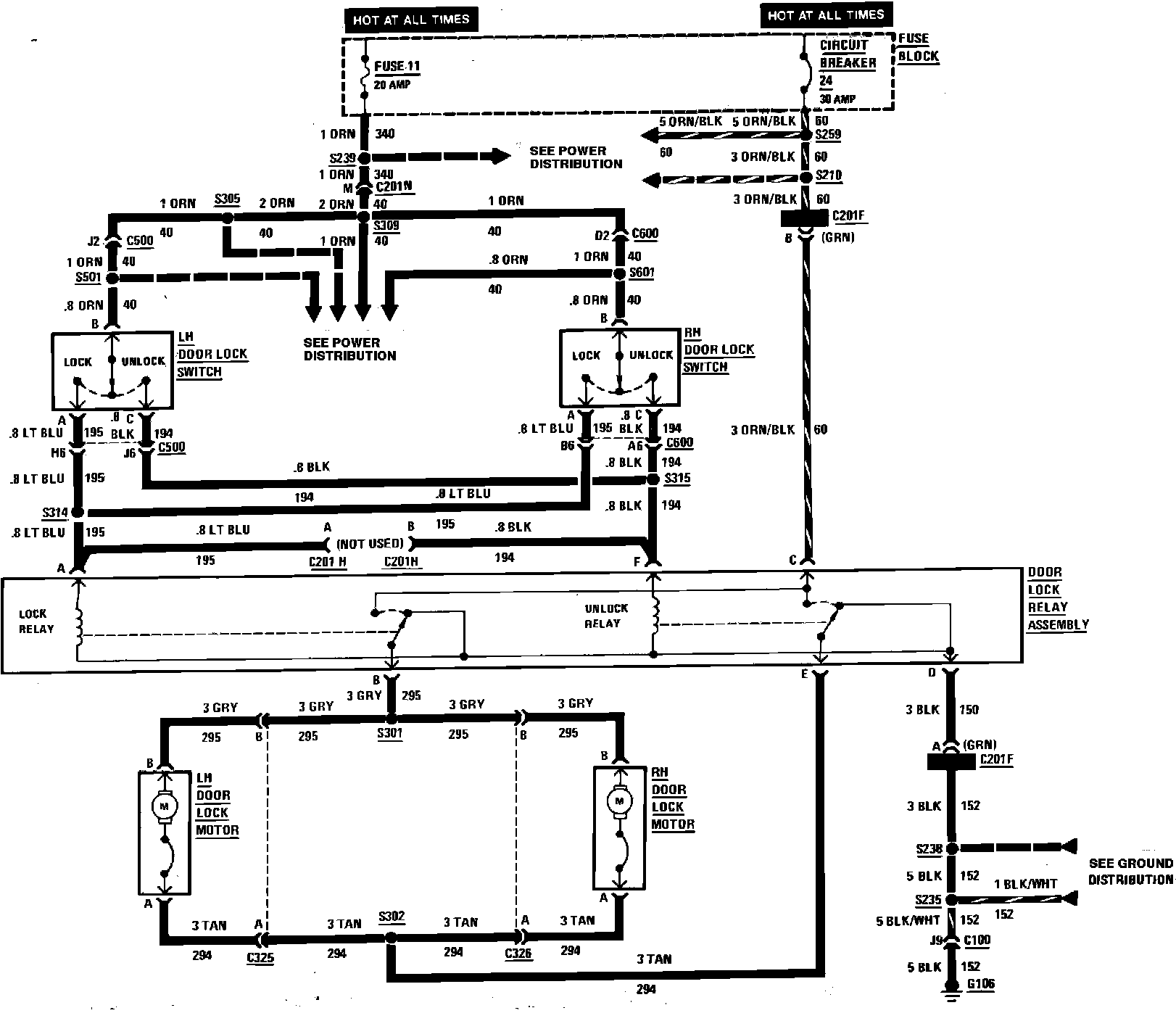 Power Door Lock Wiring Circuit, 2 Door: