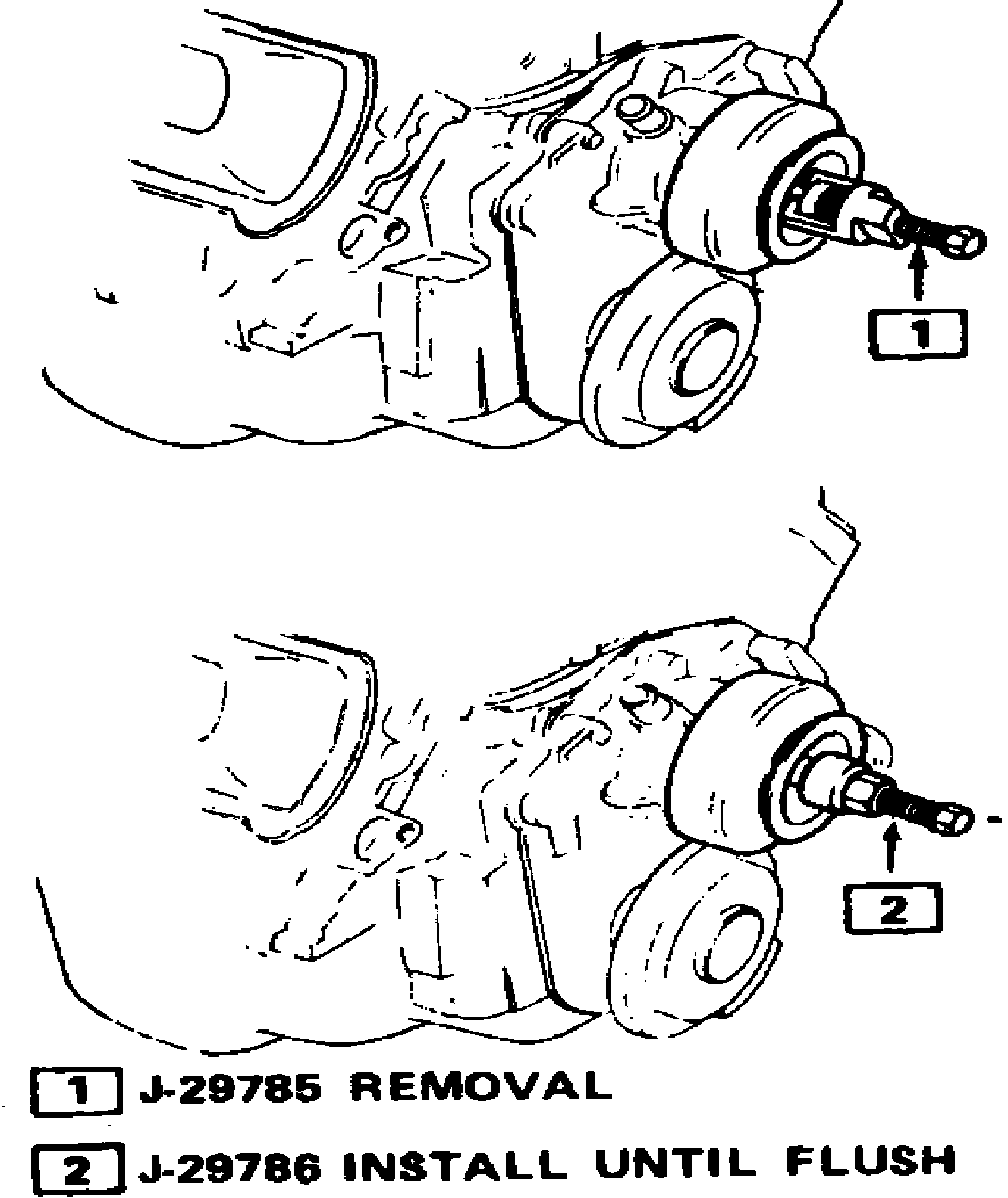 6. Remove alternator. Then, remove A/C compressor or vacuum pump brackets (if equipped).