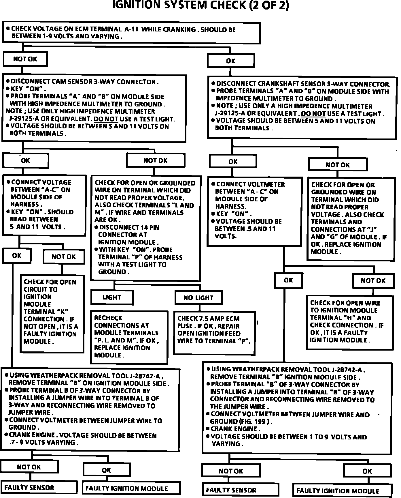 Fig. 15b C3I ignition system diagnosis chart (Part 2 of 2). 1984-85 V6-231/3.8L turbocharged engine: