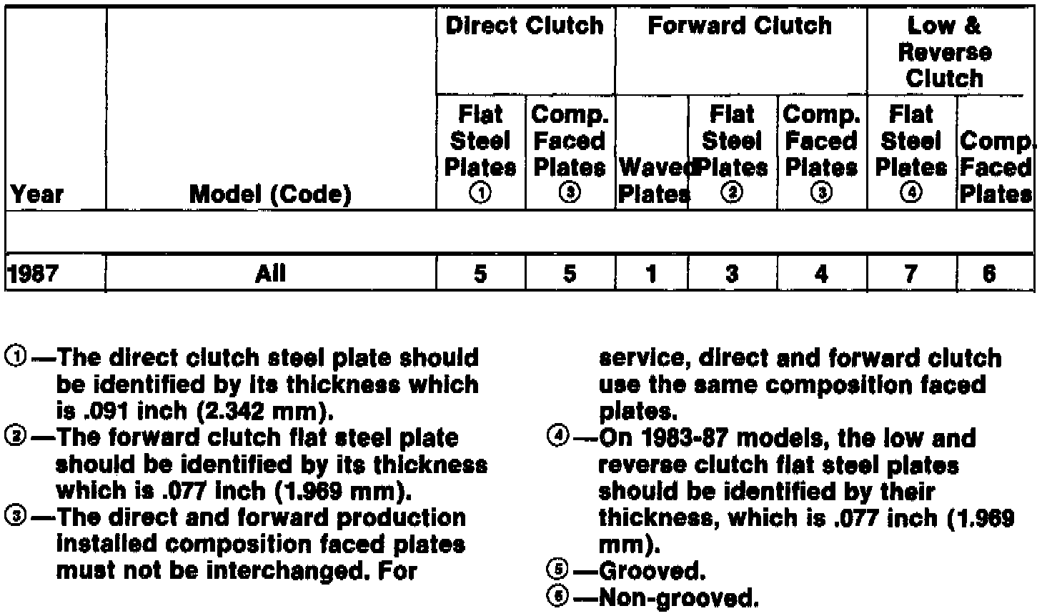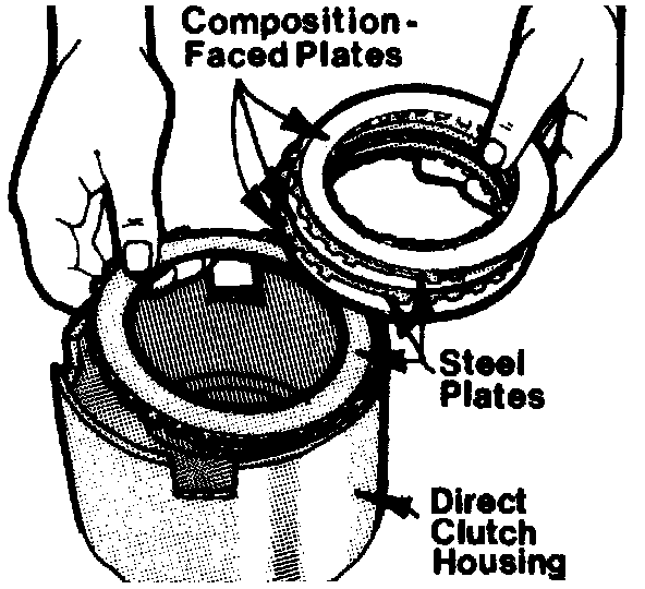 20. Using automatic transmission fluid, lubricate and install clutch pack, starting with a flat steel plate and alternating with a composition faced clutch plate, see image above step 19. Refer to "Clutch Plate Usage Chart" in image.