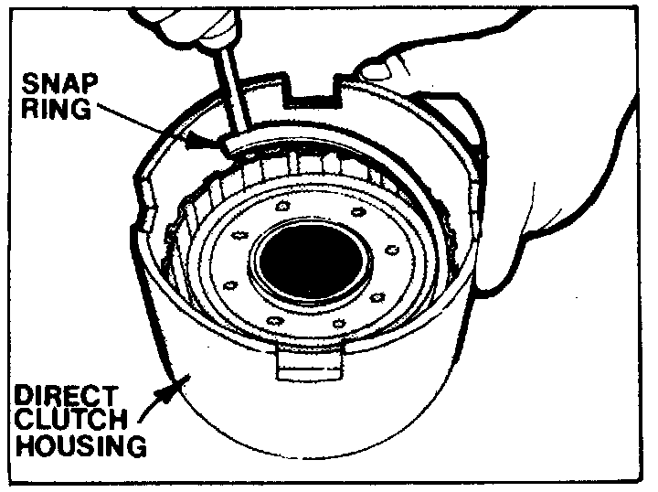 11. Inspect direct clutch housing snap ring grooves for damage, then remove and discard housing center seal.