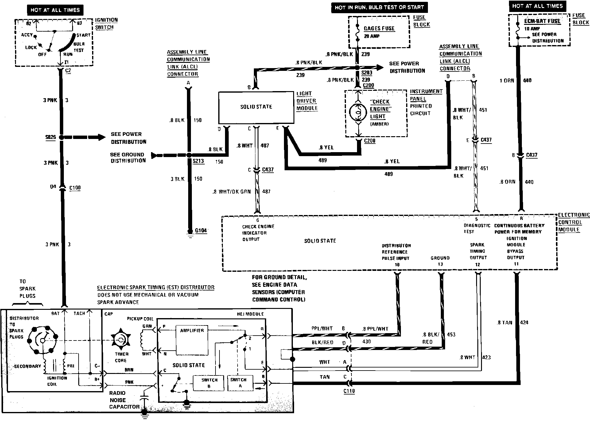 Computer Command Control (Check Engine Light & Ignition) Wiring Circuit: