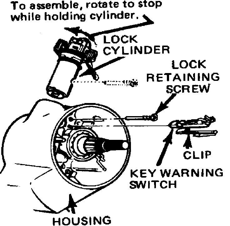 4. Turn lock cylinder to ``Run'' position, then remove the lock cylinder retaining screw and the lock cylinder, Fig. 1.