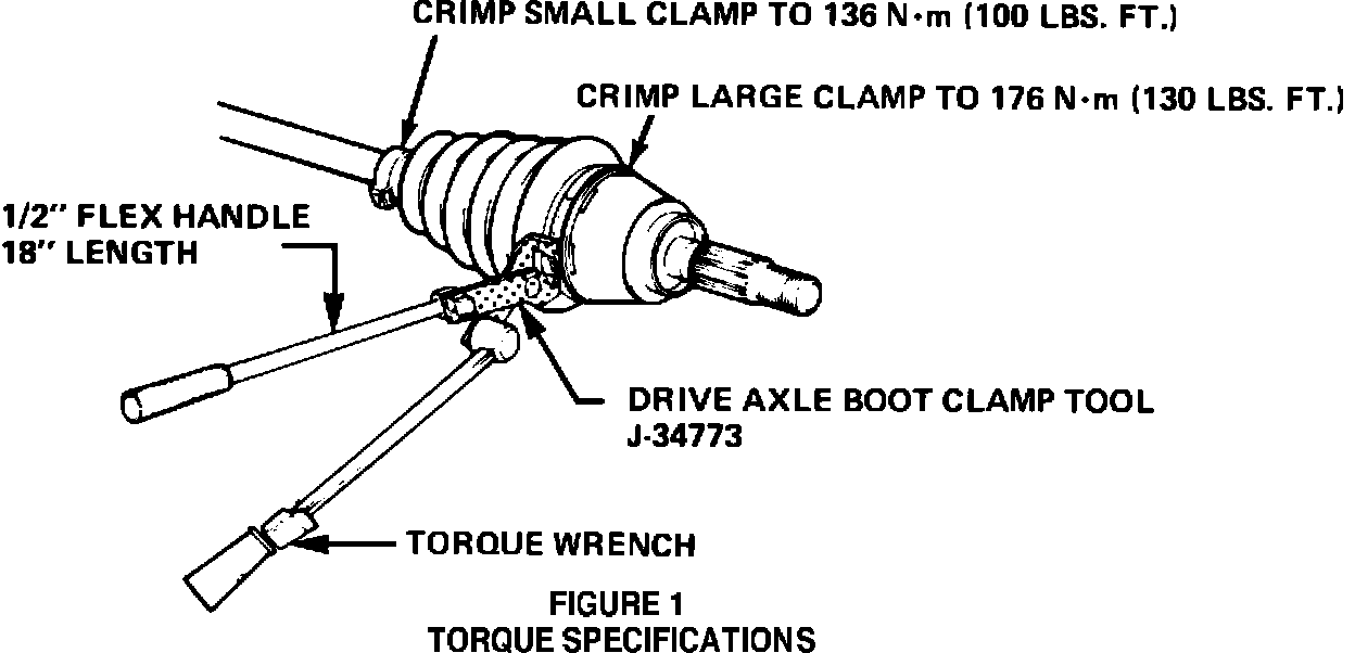 Clamp crimp torque on large end of boot is 176 N-m (130 ft.lbs.)