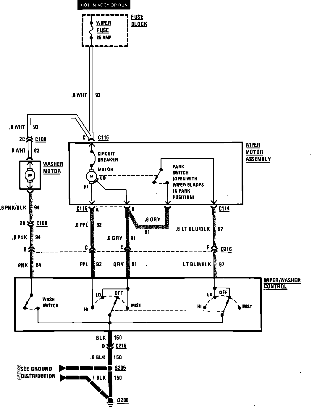 Fig. 94 Wiper/Washer Wiring Circuit. Less Pulse: