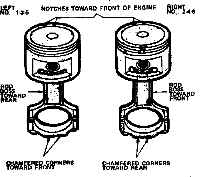 Rods and pistons should be assembled and installed as shown in