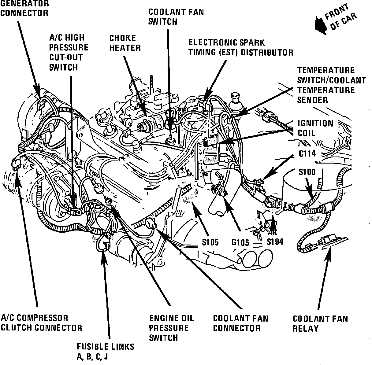 The Temperature Switch/Coolant Temperature Sender is located on the top RH of engine.