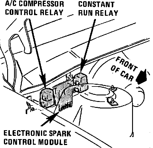 The Electronic Spark Control Module is located on RH front of dash on bracket.