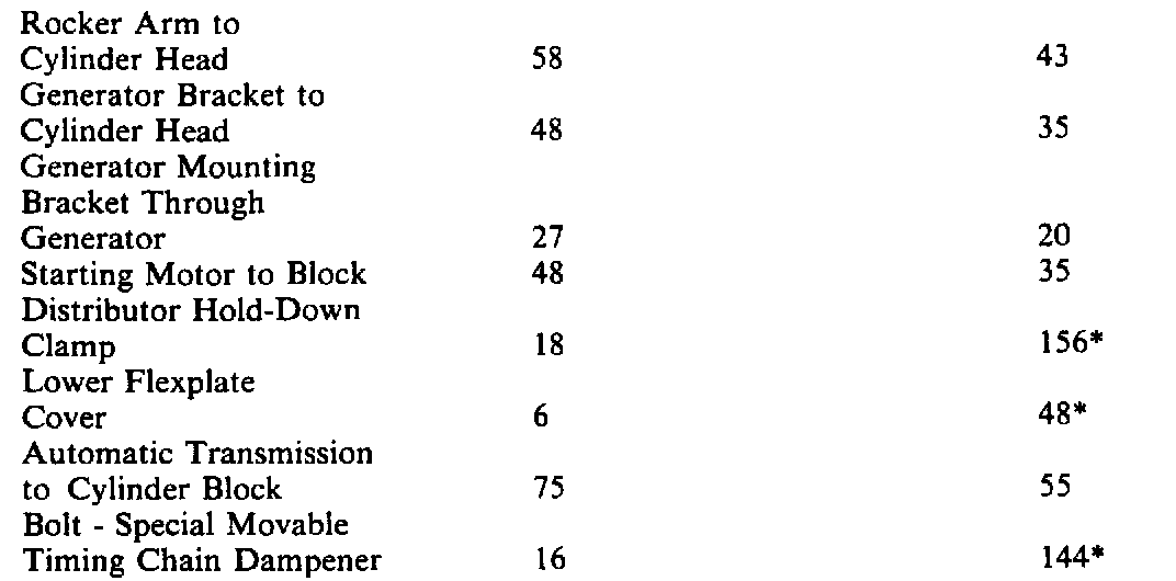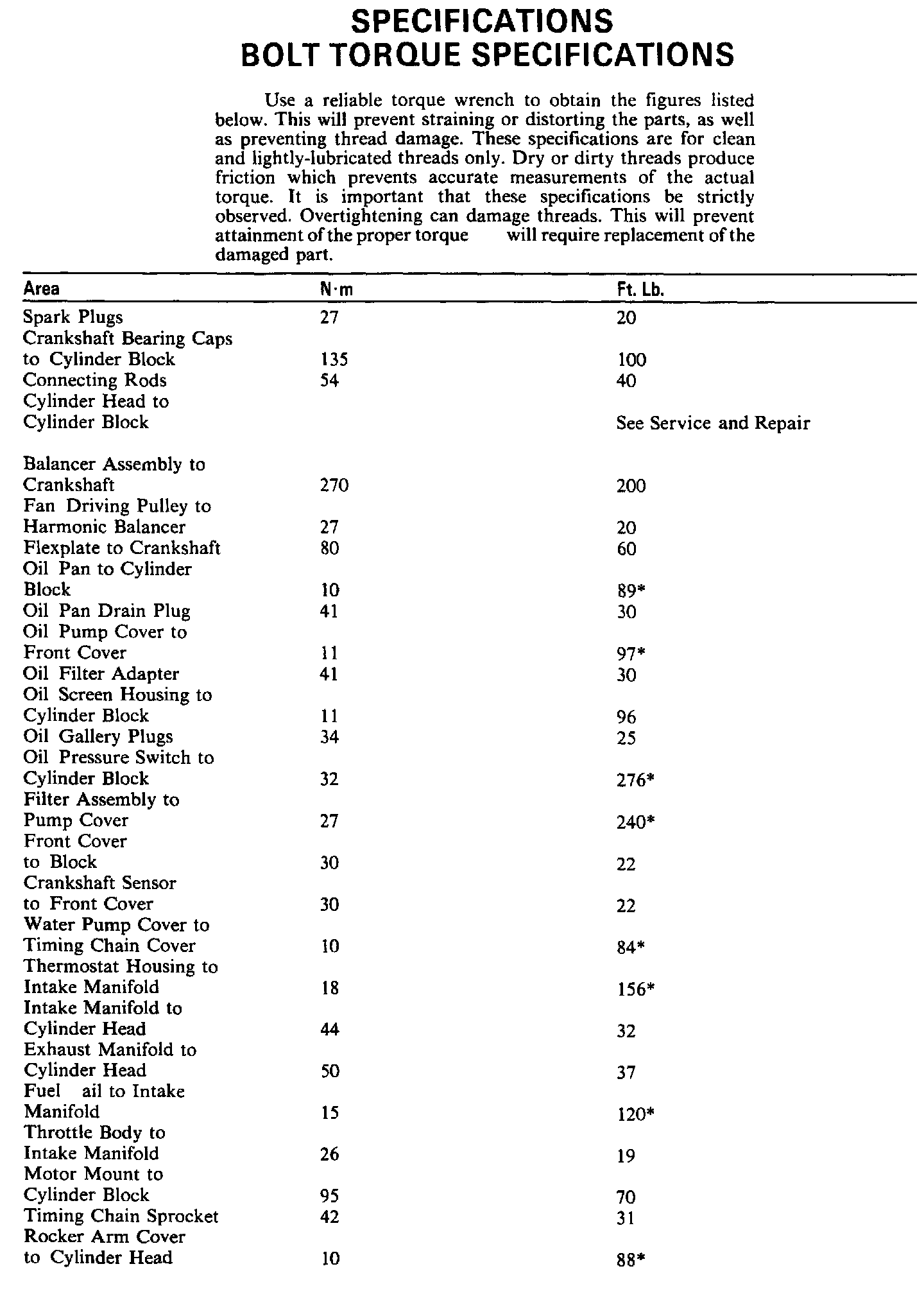 Torque Specifications: