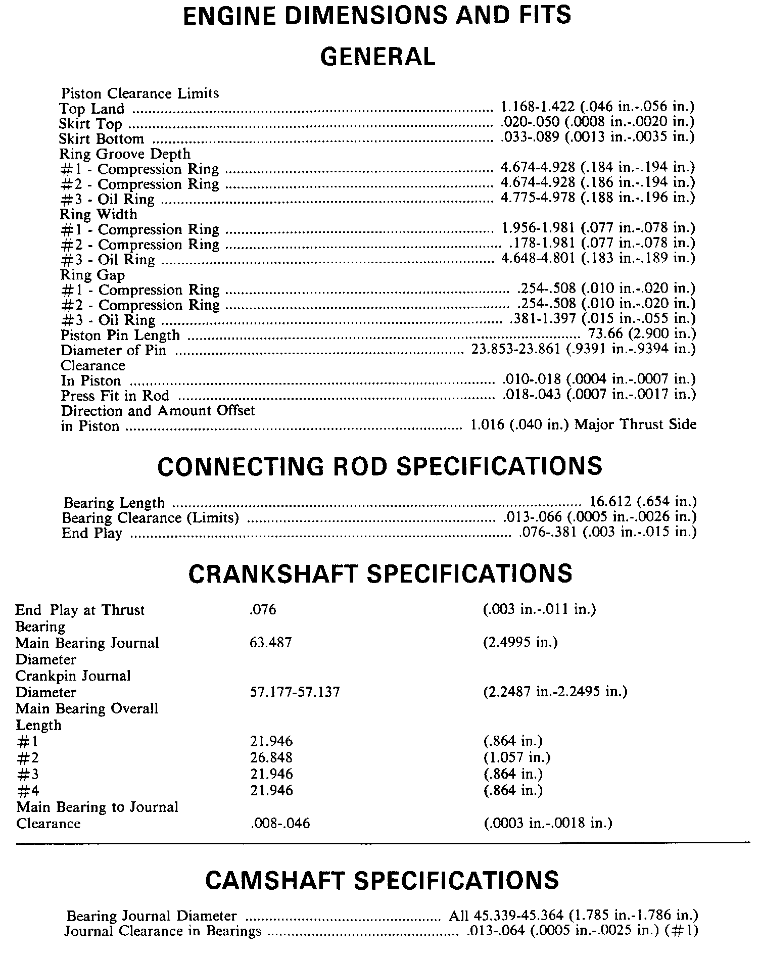 Engine Specifications: