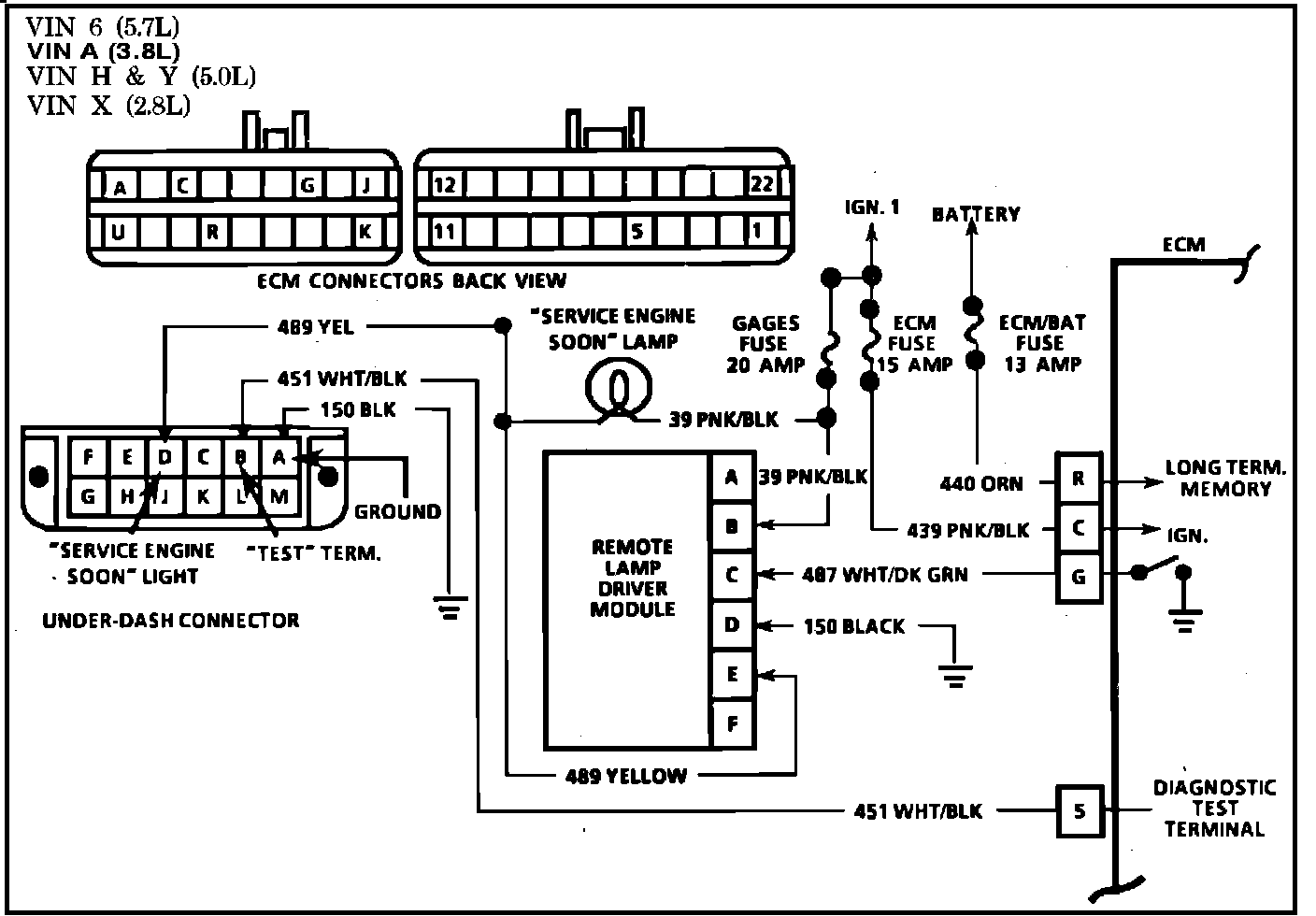 1. Checks for the proper operation of the "SERVICE ENGINE SOON" light. With the key "ON," and the engine not running, the light should be on steady.