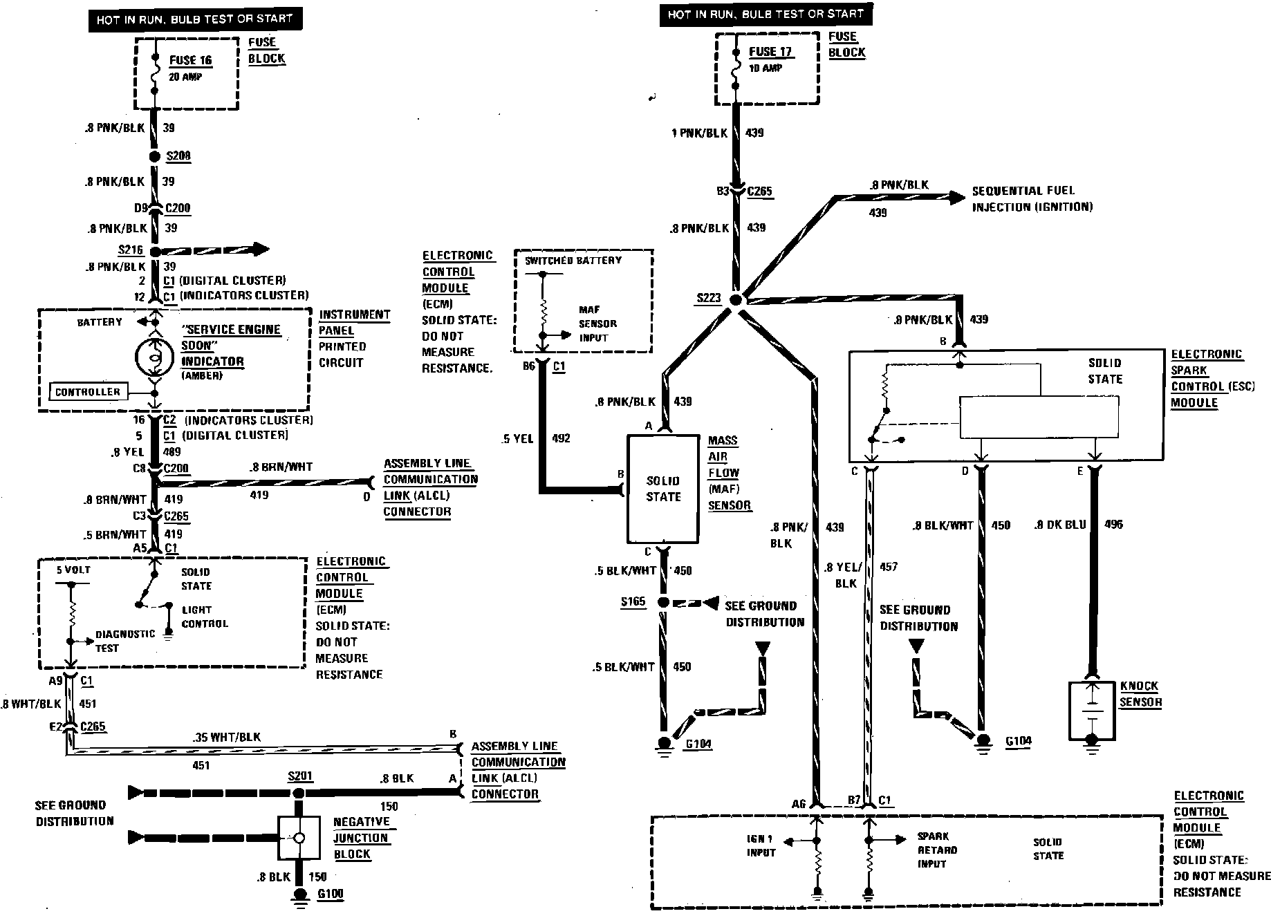Sequential Fuel Injection Air Flow Sensor, Service Engine Soon & Spark Control Wiring Circuit: