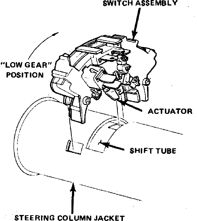 7. Adjust switch by placing gear selector in ``Park'' position. The switch main housing and housing back should ratchet, providing proper adjustment.